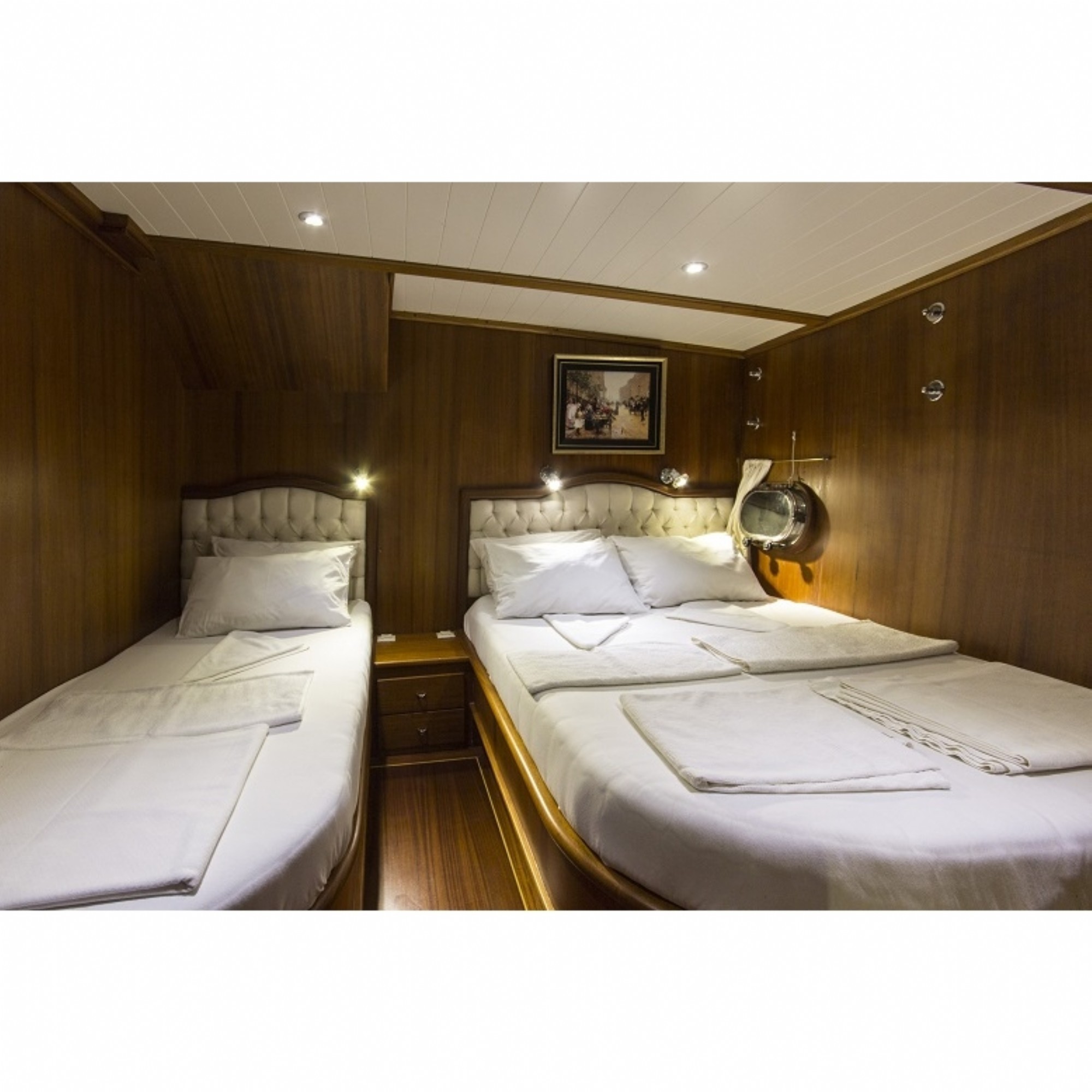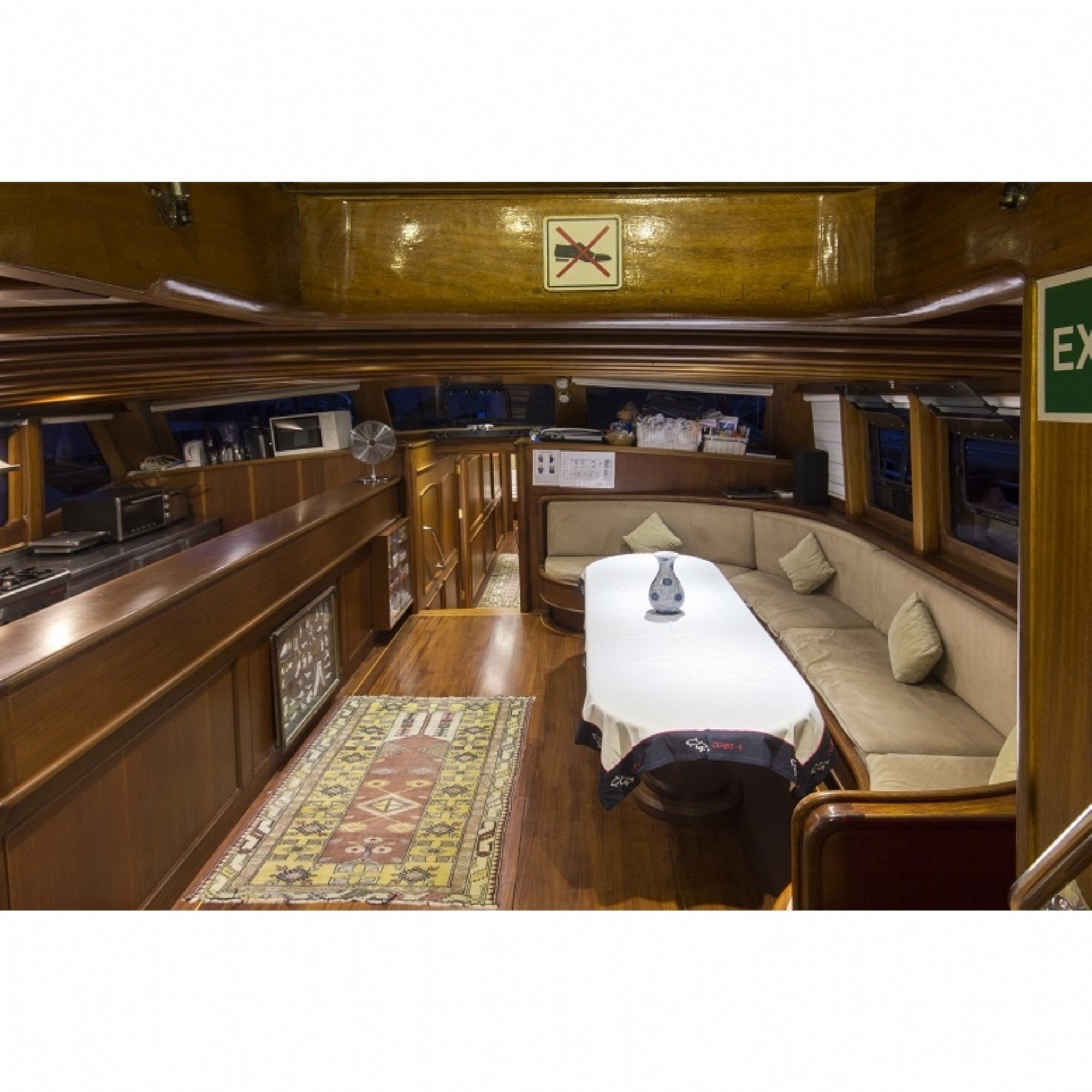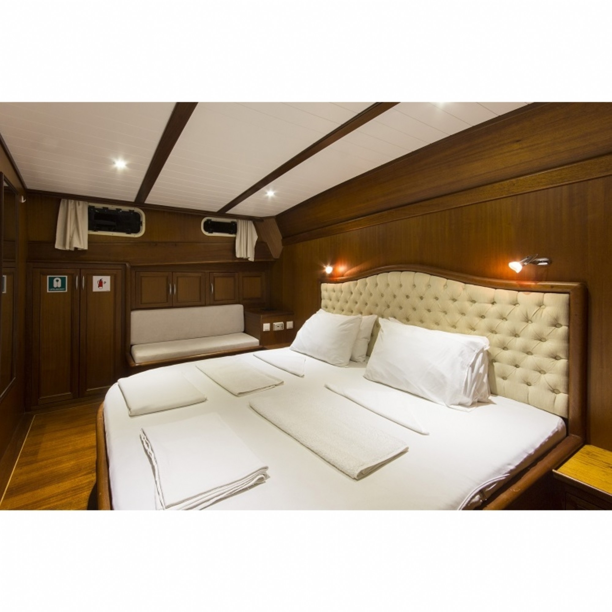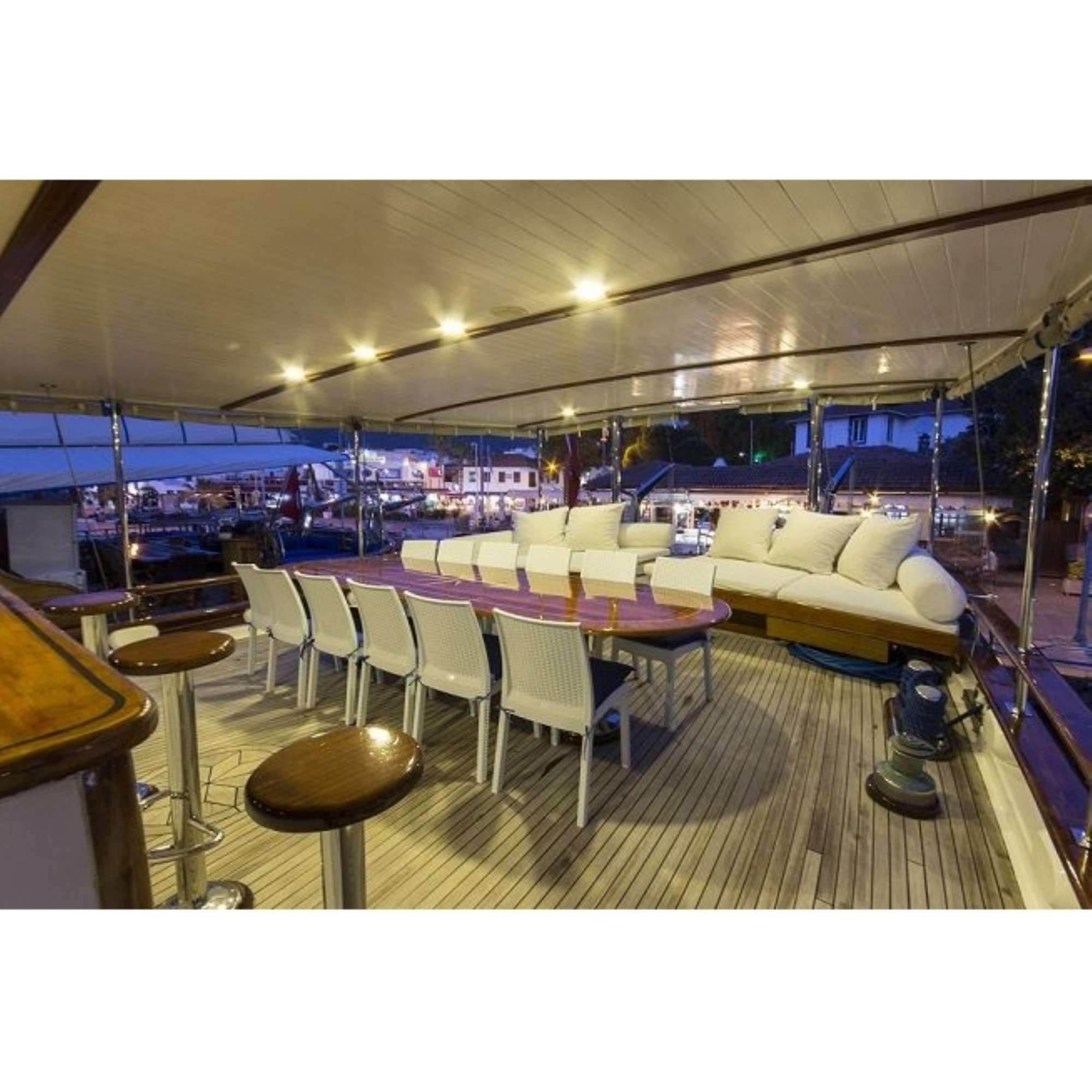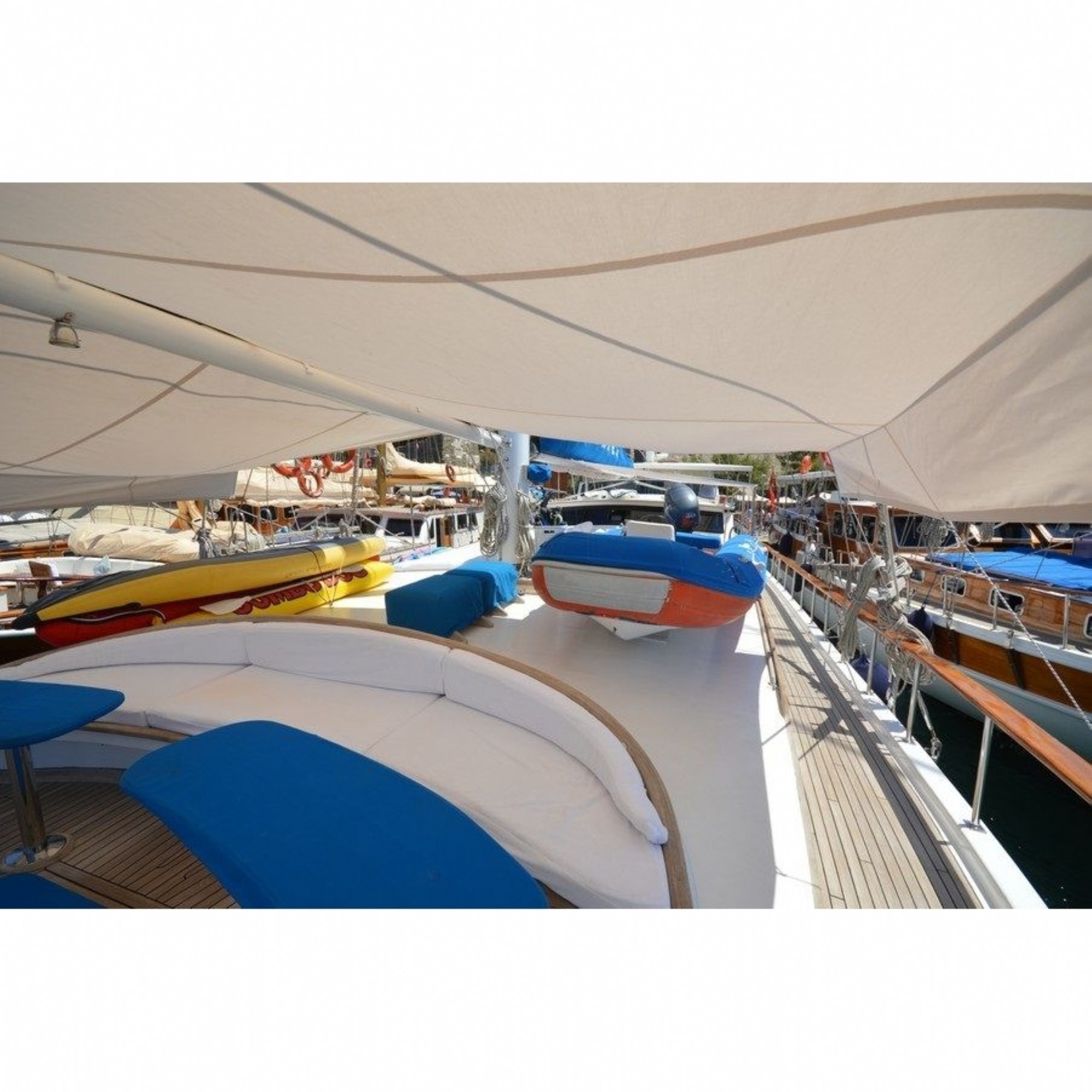 Teknemiz delüks özelliklerde olup, 9 kabini ile 18 kişilik gruplarınıza kadar hizmet verebilmektedir. Güler yüzlü mürettebatı ile kaliteli hizmet alabileceğiniz, yetenekli aşçısının yemeklerine doyamayacağınız, eğlenceli bir tatil geçireceğiniz bu teknemizle mavi yolculuğun tadına doyamayacaksınız.
