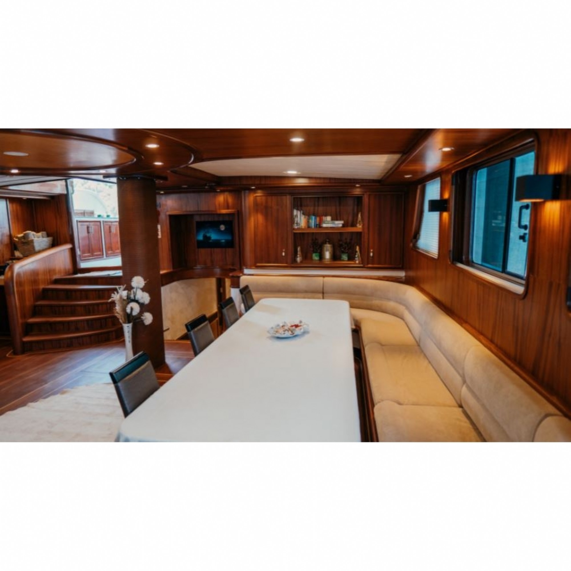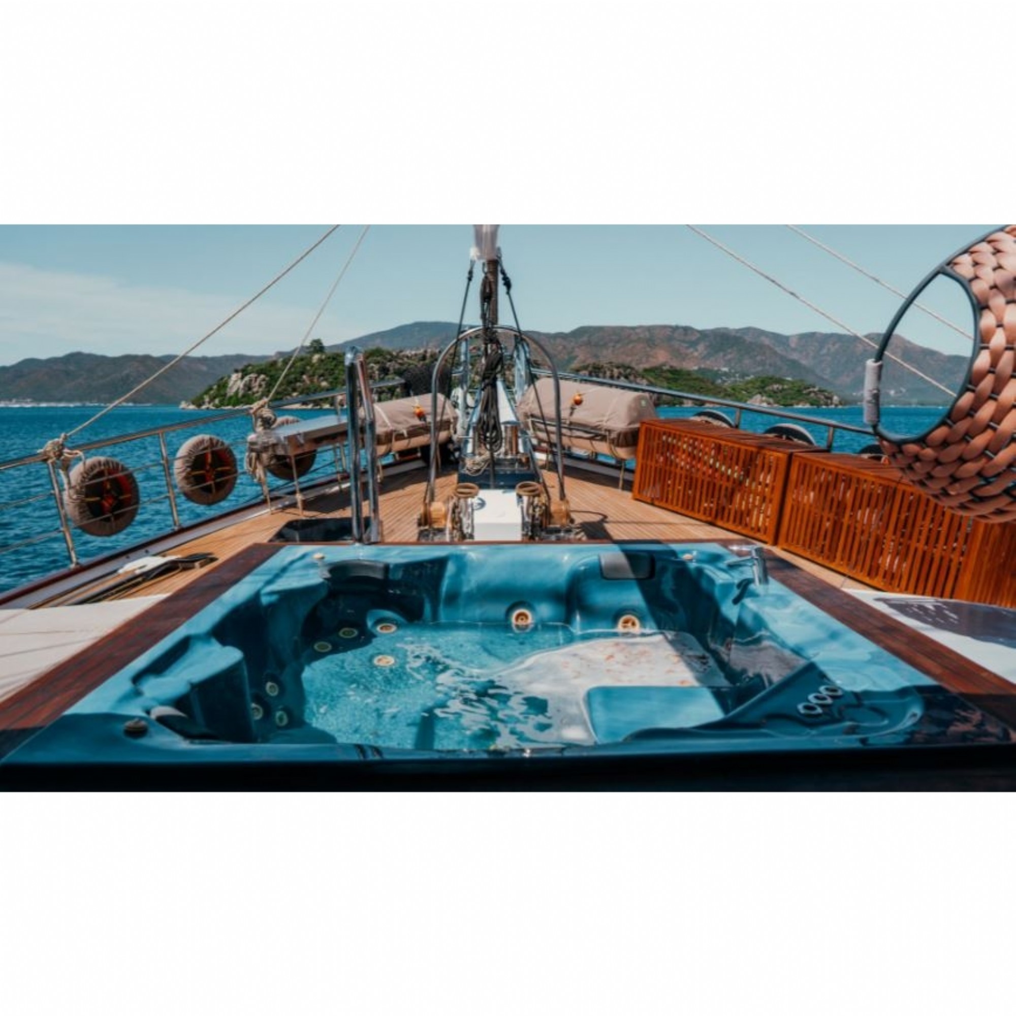 Teknemiz delüks özelliklerde olup, 10 kabini ile 20 kişilik gruplarınıza kadar hizmet verebilmektedir. Kalabalık grubunuzla eğlence dolu bir mavi yolculuk ile kaliteyi aynı yerde bulabileceğiniz bu teknemiz ile mavi koyları keşfe çıkın.Teknemizde Uydu Tv, Sınırsız Wifi, Su kayağı, Ringo , Jakuzi bulunmakta olup, tatilinize eğlencede katmanız için ideal bir teknemizdir. 7 profesyonel personeliyle siz değerli misafirlerine kesintisiz hizmet vermektedir.