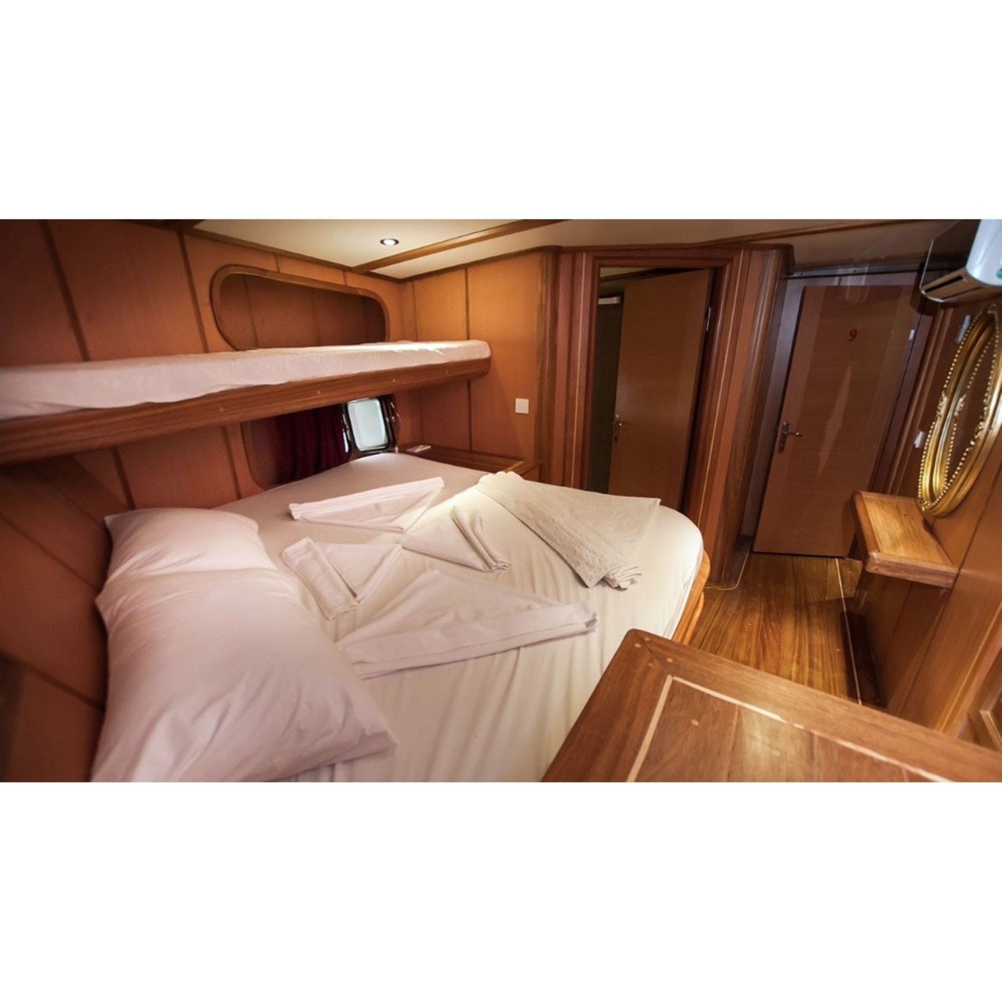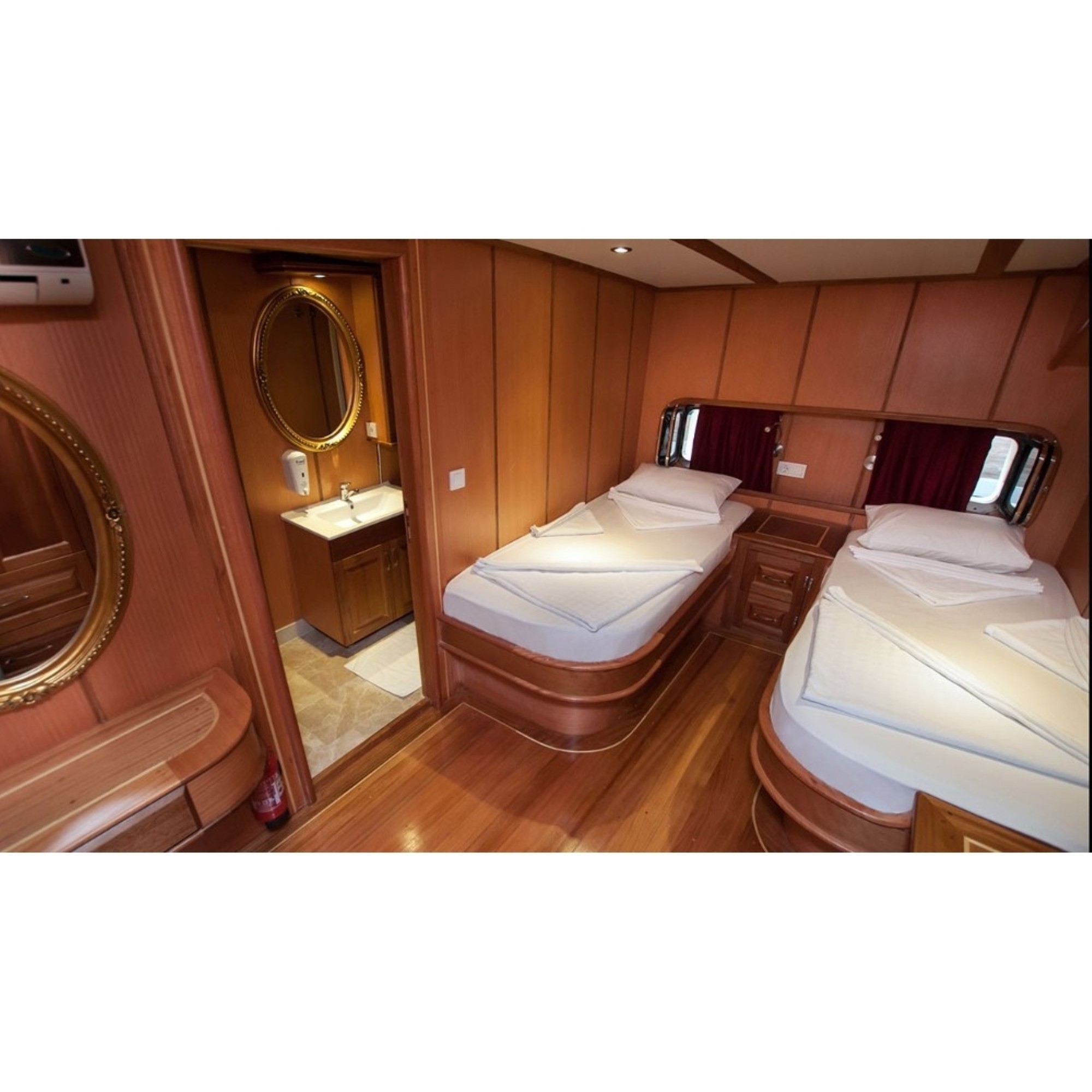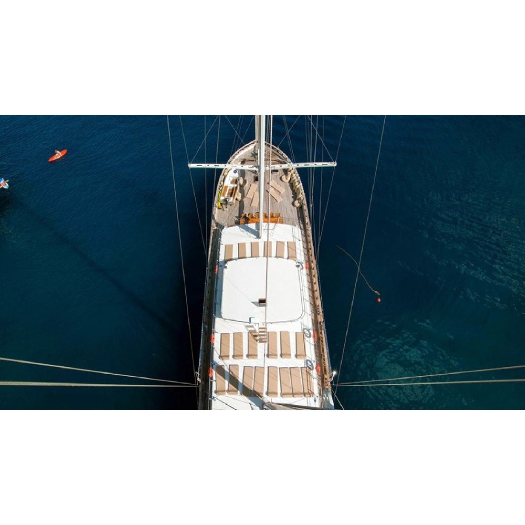 Teknemiz delüks özelliklerde olup, 14 kabini ile 32 kişilik gruplarınıza kadar hizmet verebilmektedir. Kalabalık grubunuzla eğlence dolu bir mavi yolculuk ile kaliteyi aynı yerde bulabileceğiniz bu teknemiz ile mavi koyları keşfe çıkın.