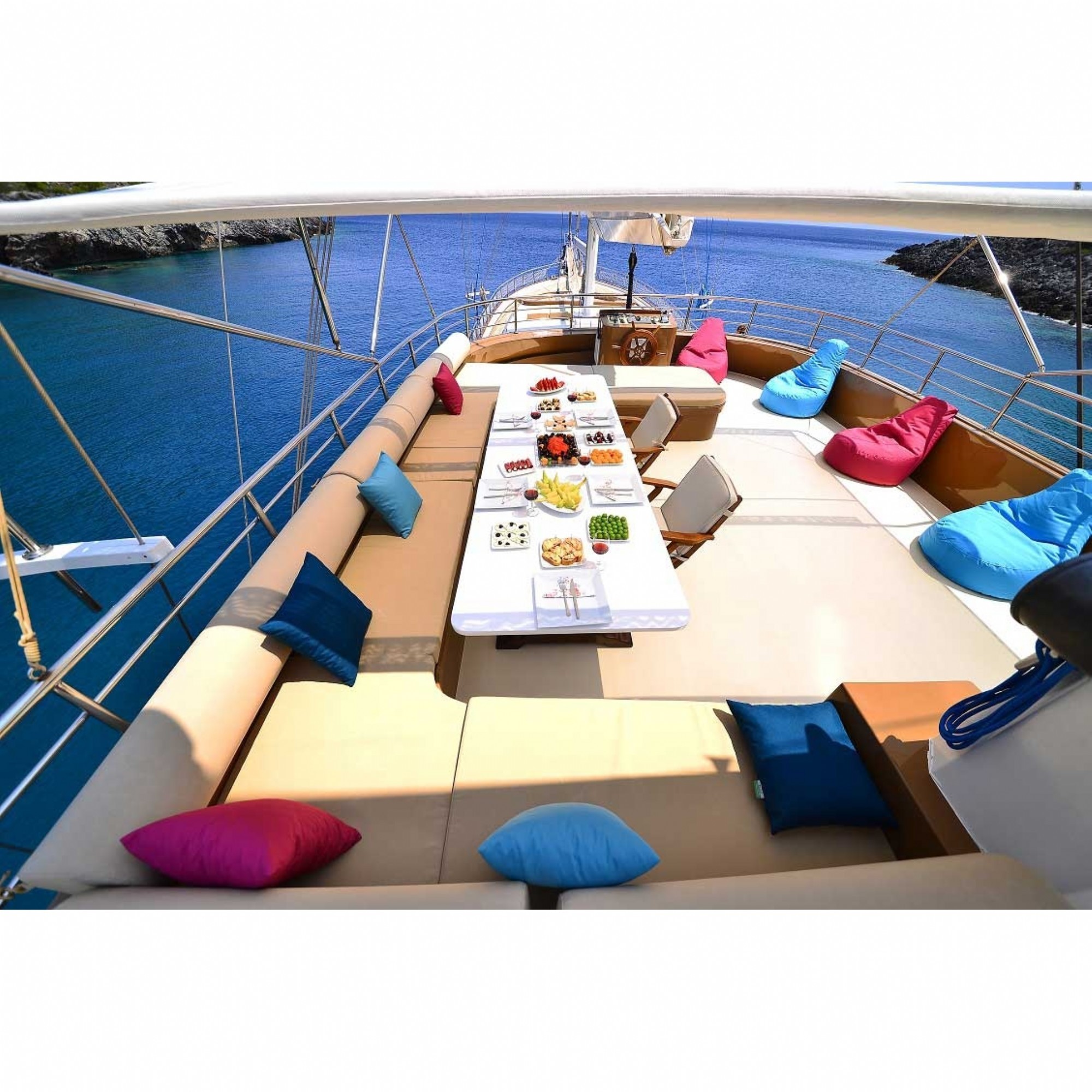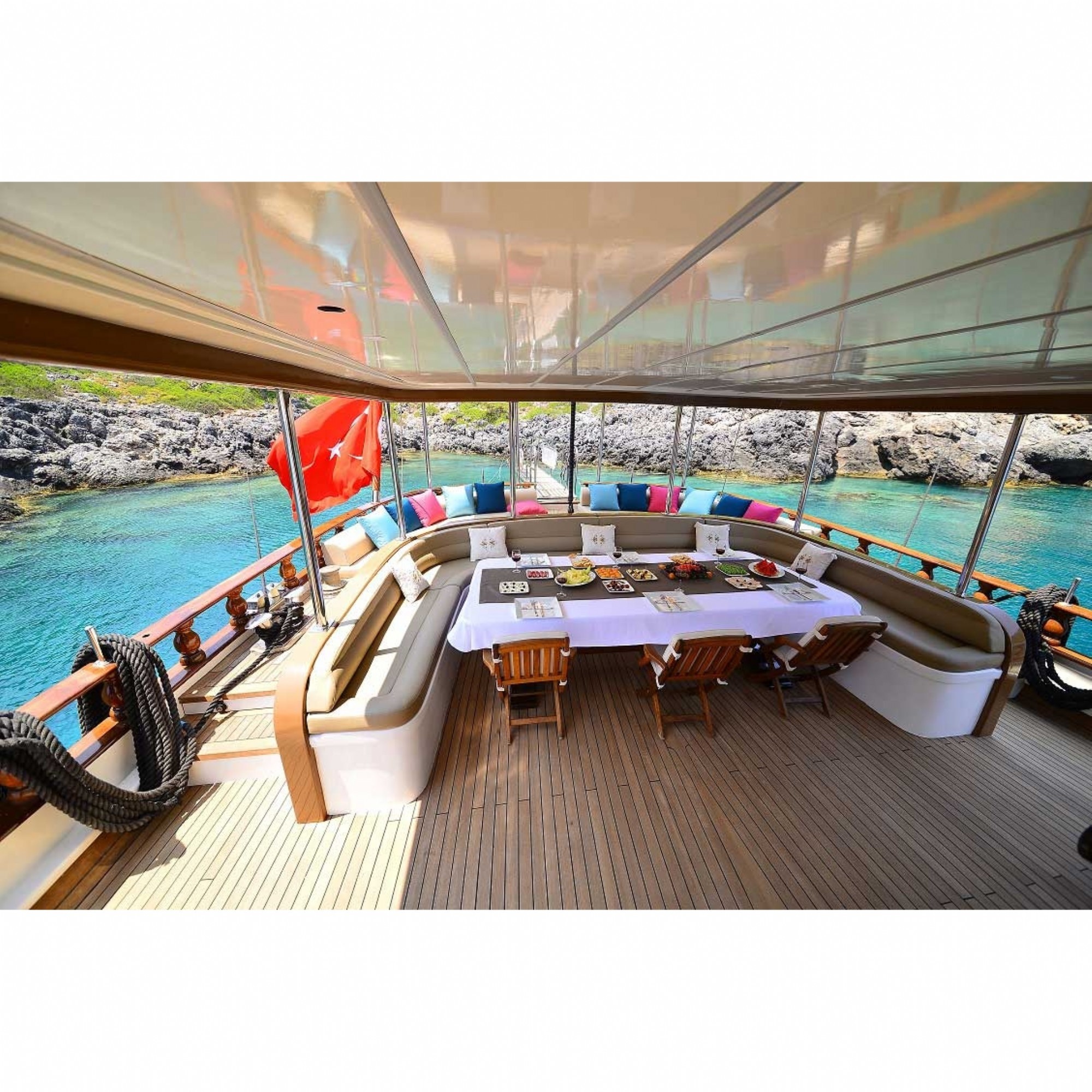 Teknemiz delüks özelliklerde olup, 5 kabini ile 12 kişilik gruplarınıza kadar hizmet verebilmektedir. Mavi yolculuk sevenleri hizmetiyle, kalitesiyle, şıklığı ve konforuyla mükemmel bir tatil yaşatmak için hizmetinize sunulmayı beklemektedir.
