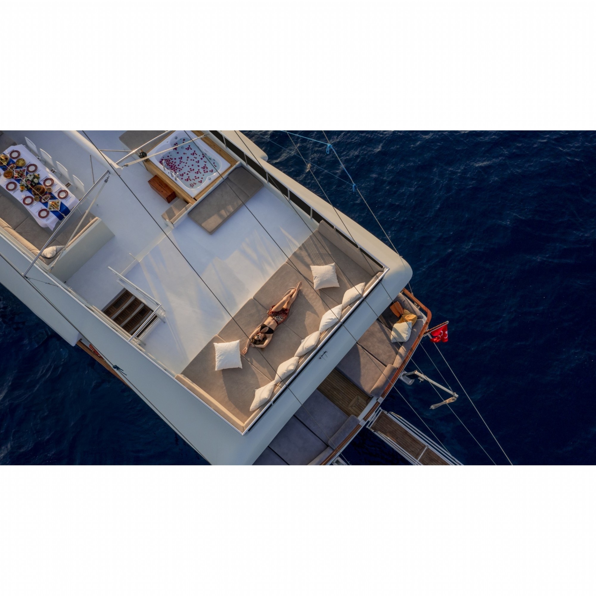 Bu teknemiz ile Bodrum, Datça, Fethiye, Marmaris, Göcek rotalarında mavi yolculuk planlayabilirsiniz. Her iki rotada mavinin her tonuna hayran kalacağınız koyları ziyaret edeceksiniz.