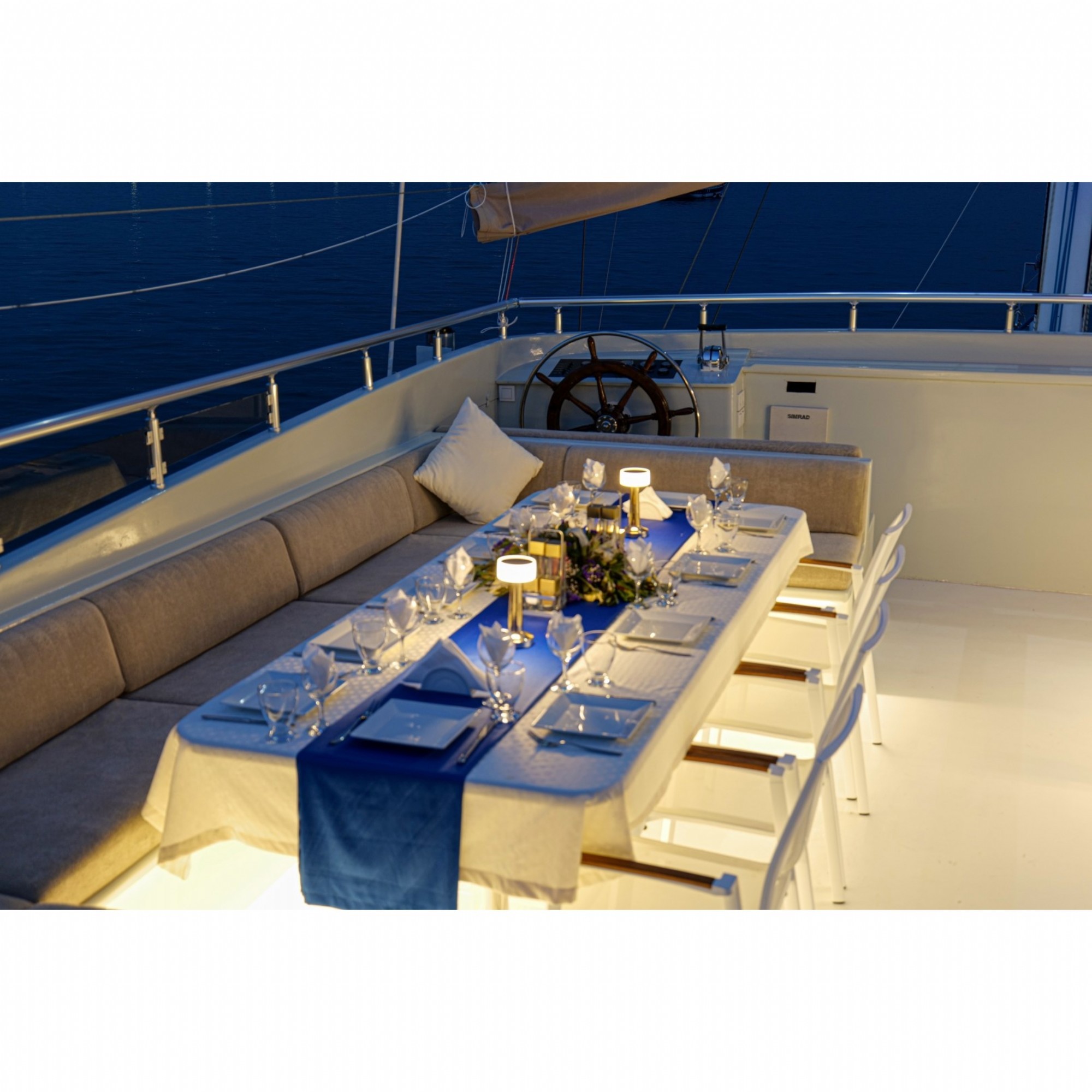 Teknemiz delüks özelliklerde olup, 6 kabini ile 12 kişilik gruplarınıza kadar hizmet verebilmektedir. Profesyonel mürettebatıyla kaliteli hizmet alacağınız, %100 memnuniyet garantisi olan, inanılmaz lezzetler tadacağınız, huzur dolu bir mavi yolculuk için ideal olan bu teknemiz hizmetinize sunulmaya hazırdır.