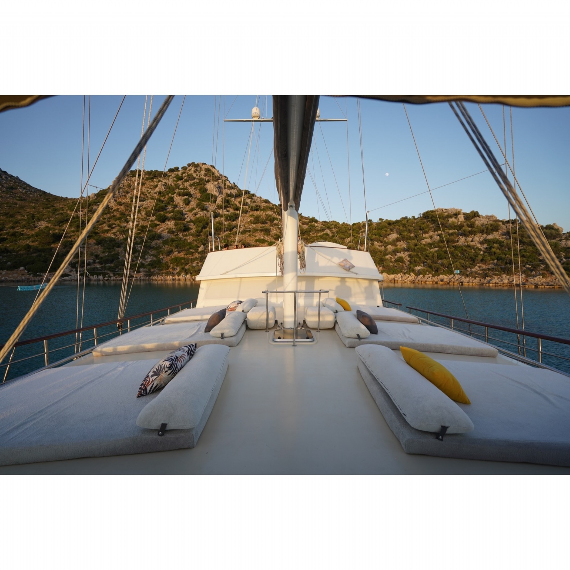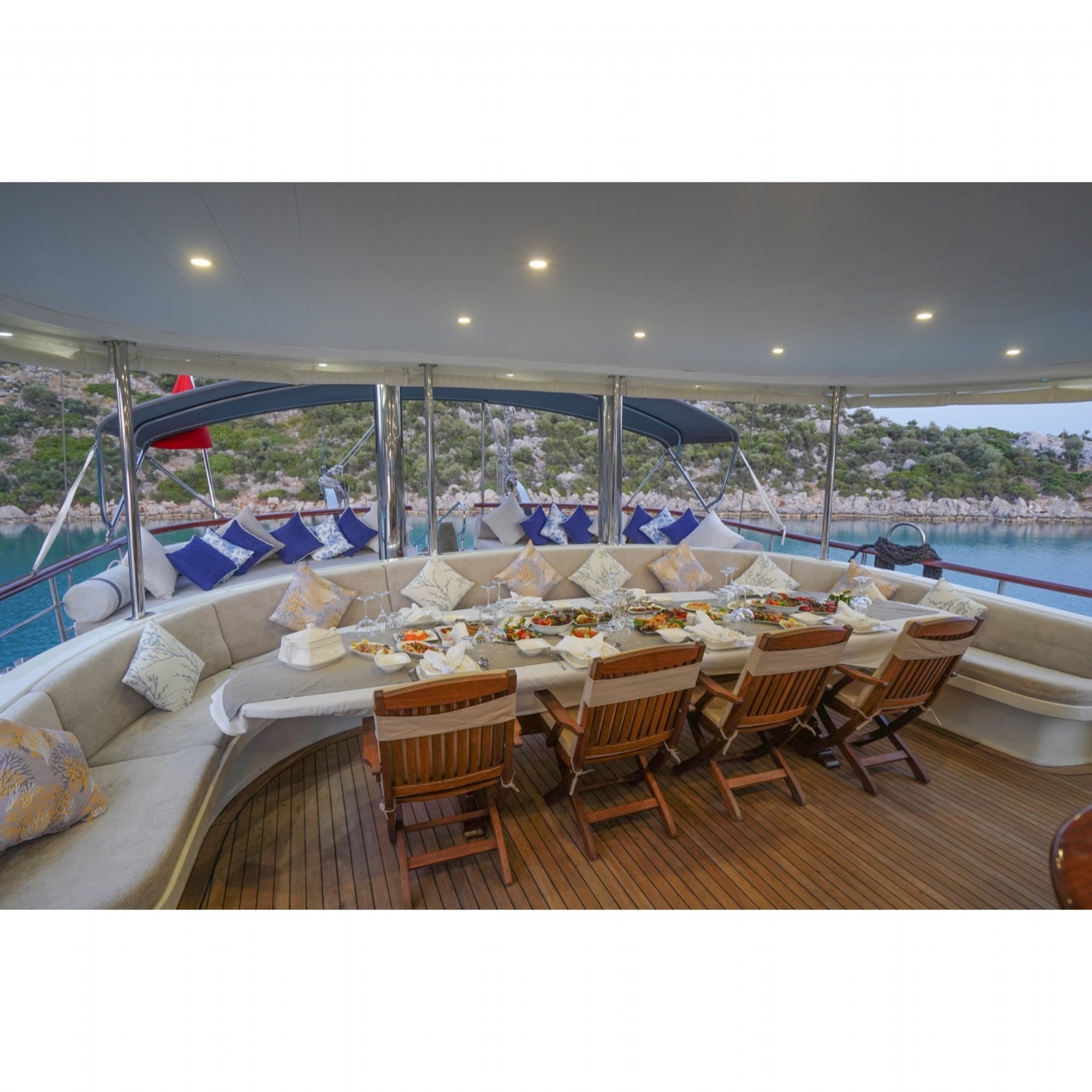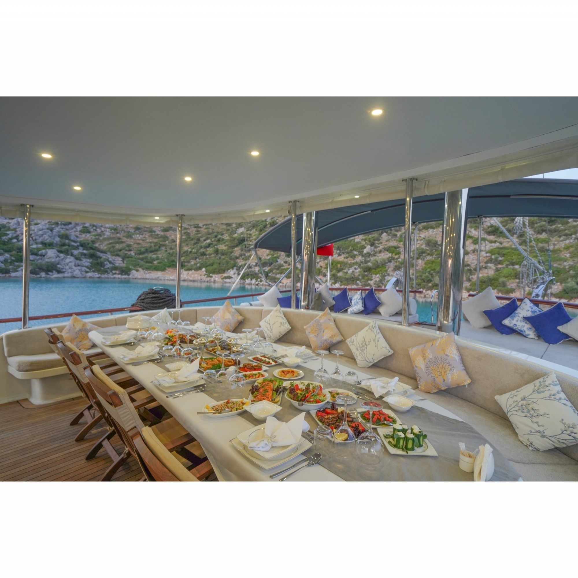 Teknemiz 2019 yapımı , 6 kabini ile 12 kişilik gruplarınıza kadar hizmet verebilmektedir. Keyif ve huzur dolu bir mavi yolculuk için uygun bir seçenek olan bu teknemizde yiyeceğiniz yemekler tatilinize lezzet katacaktır.