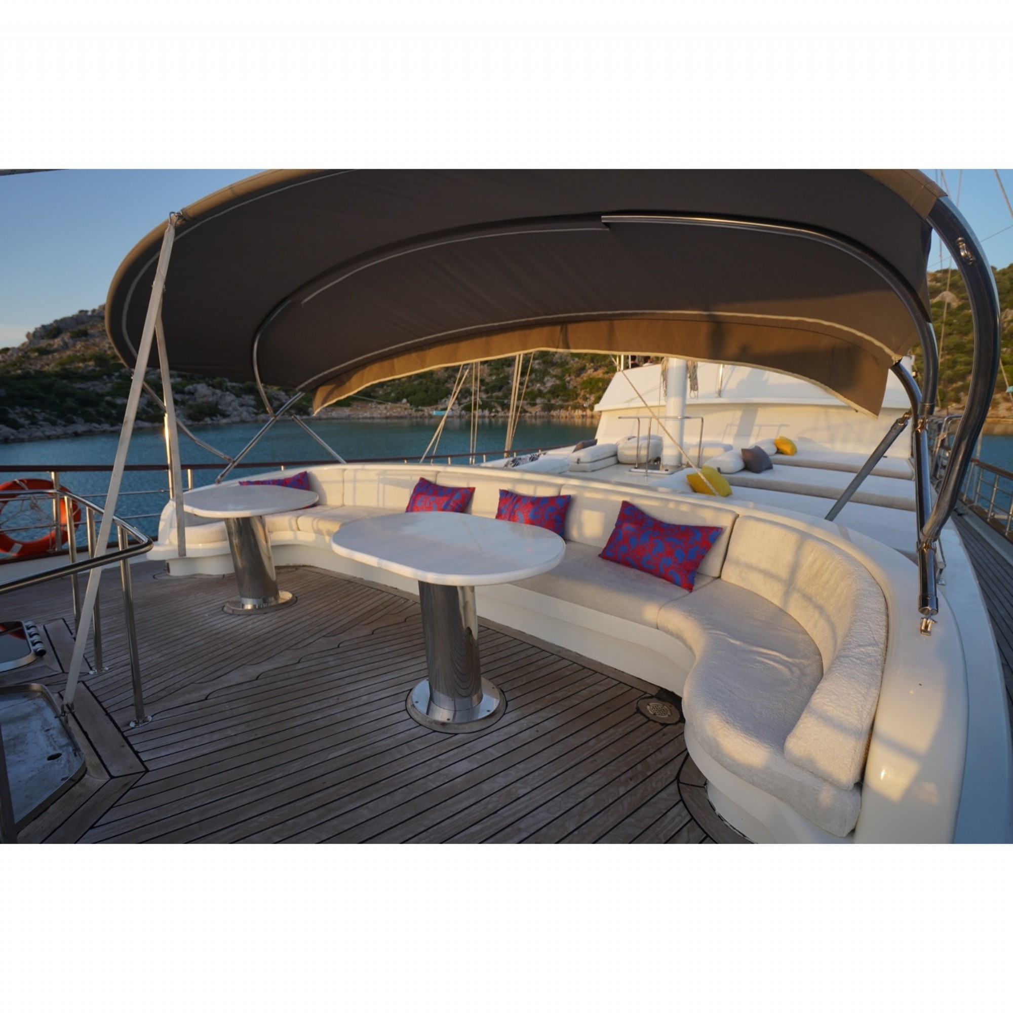 Bu teknemiz ile Bodrum, Fethiye, Göcek, Marmaris, Datça rotalarında mavi yolculuk planlayabilirsiniz. Her rotada mavinin her tonuna hayran kalacağınız koyları ziyaret edeceksiniz.