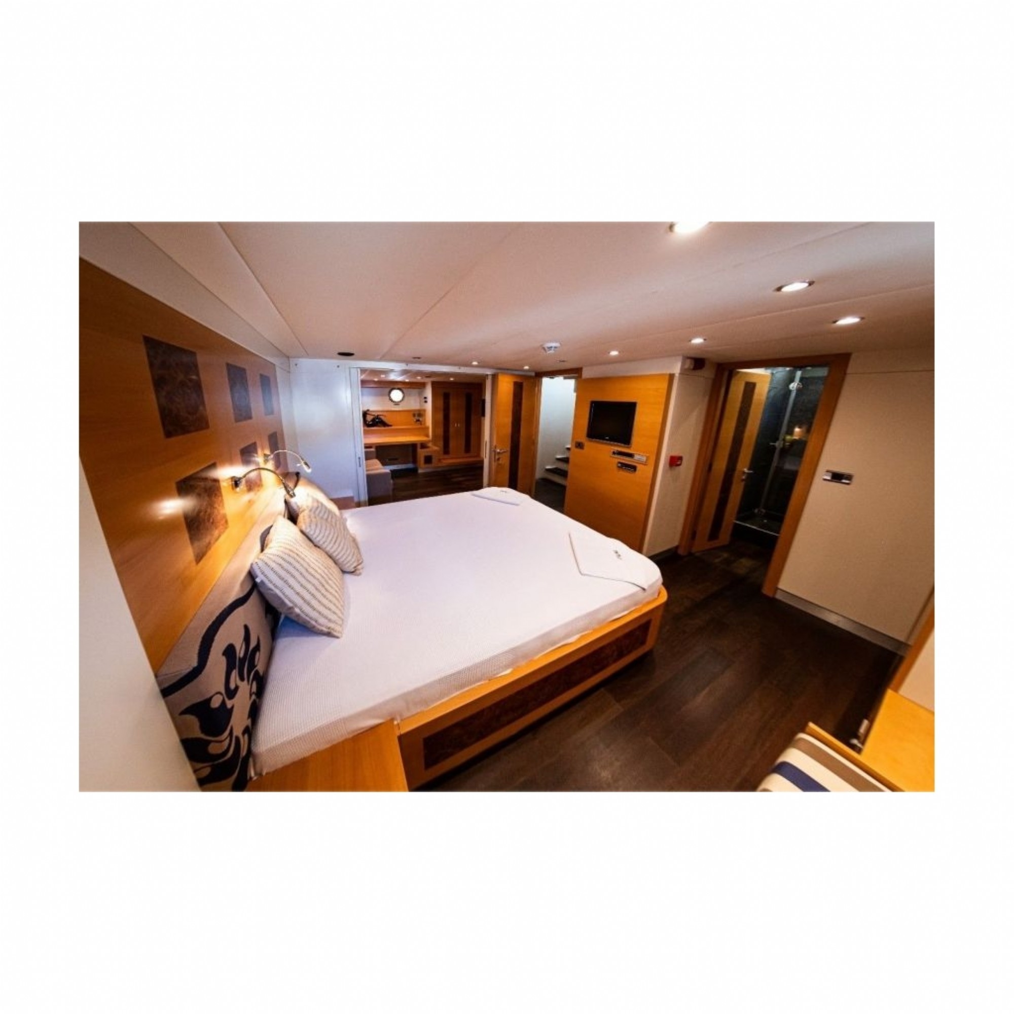 38 metre uzunluğunda, 8,25 metre genişliğinde olan teknemiz delüks özelliklerde olup, 5 kabini ( 2 master, 2 double, 1 twin) ile 10 kişilik gruplarınıza kadar hizmet verebilmektedir. Mavi yolculuk sevenleri hizmetiyle, kalitesiyle, şıklığı ve konforuyla mükemmel bir tatil yaşatmak için hizmetinize sunulmayı beklemektedir. İnternet , Tv , klima gibi konforal özellikşeriyle siz değerli misafirlerine kaliteli bir seyehat ve mavi yolculuk deneyimi yaşatmak için her an hazır bulunmaktadır.