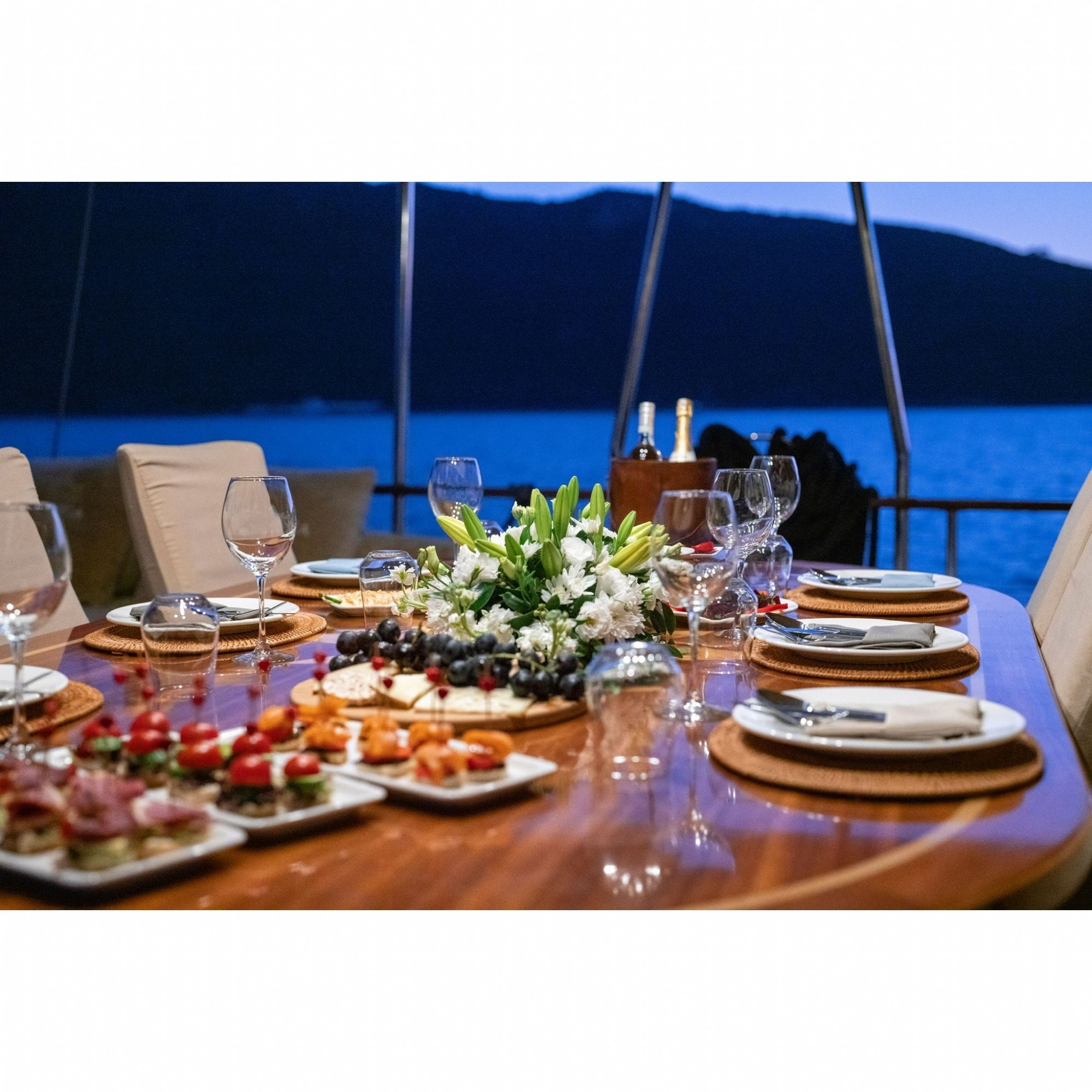 Teknelerimizle mavi yolculuk yaparken ihtiyacınız olan kumanyayı kendiniz temin edebileceğiniz gibi, seçeceğiniz menülere istinaden kaptan ve ya aşçılarımızın miktarlandırmasına göre ihtiyacınız olan kumanyayı anlaşmalı alışveriş merkezinden temin ederiz. Her koşulda teknelerimizde kumanyanızı muhafaza eder ve alanında profesyonel mürettebatımız en iyi şekilde hazırlayıp servisini yapacaktır.