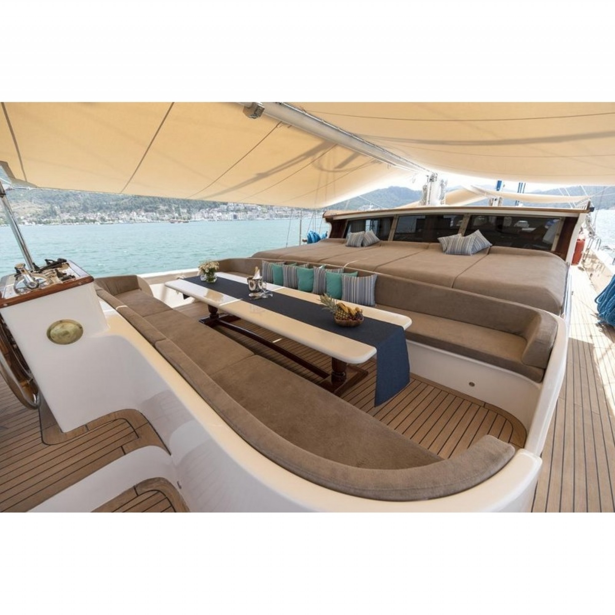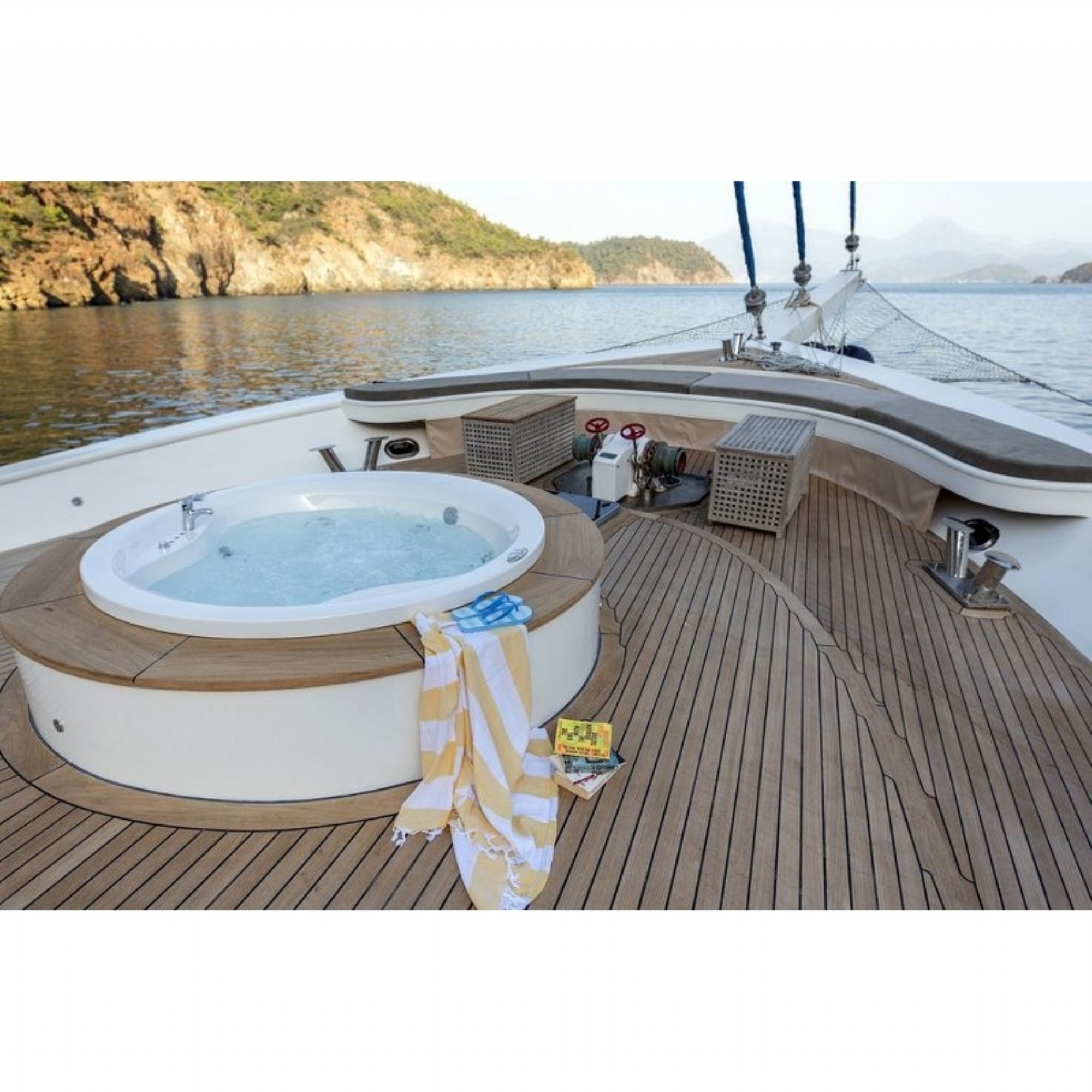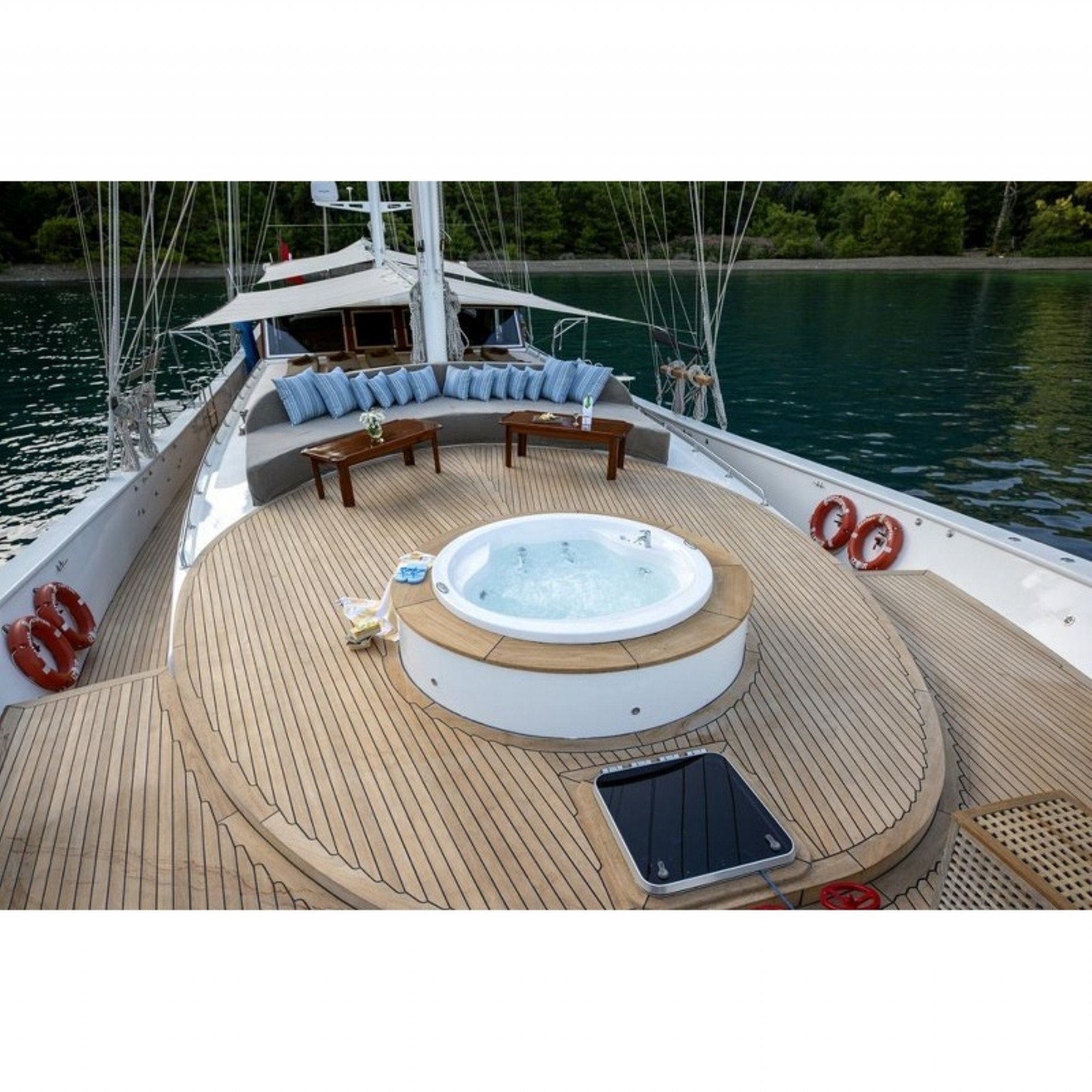 Teknemiz delüks özelliklerde olup, 6 kabini ile 12 kişilik gruplarınıza kadar hizmet verebilmektedir. Geniş ve konforlu yaşam alanları, delüks hizmet anlayışı ve eğlence alternatifleriyle huzur ve keyif dolu bir mavi yolculuk için doğru bir seçenek olan bu teknemiz hizmetinize hazırdır.