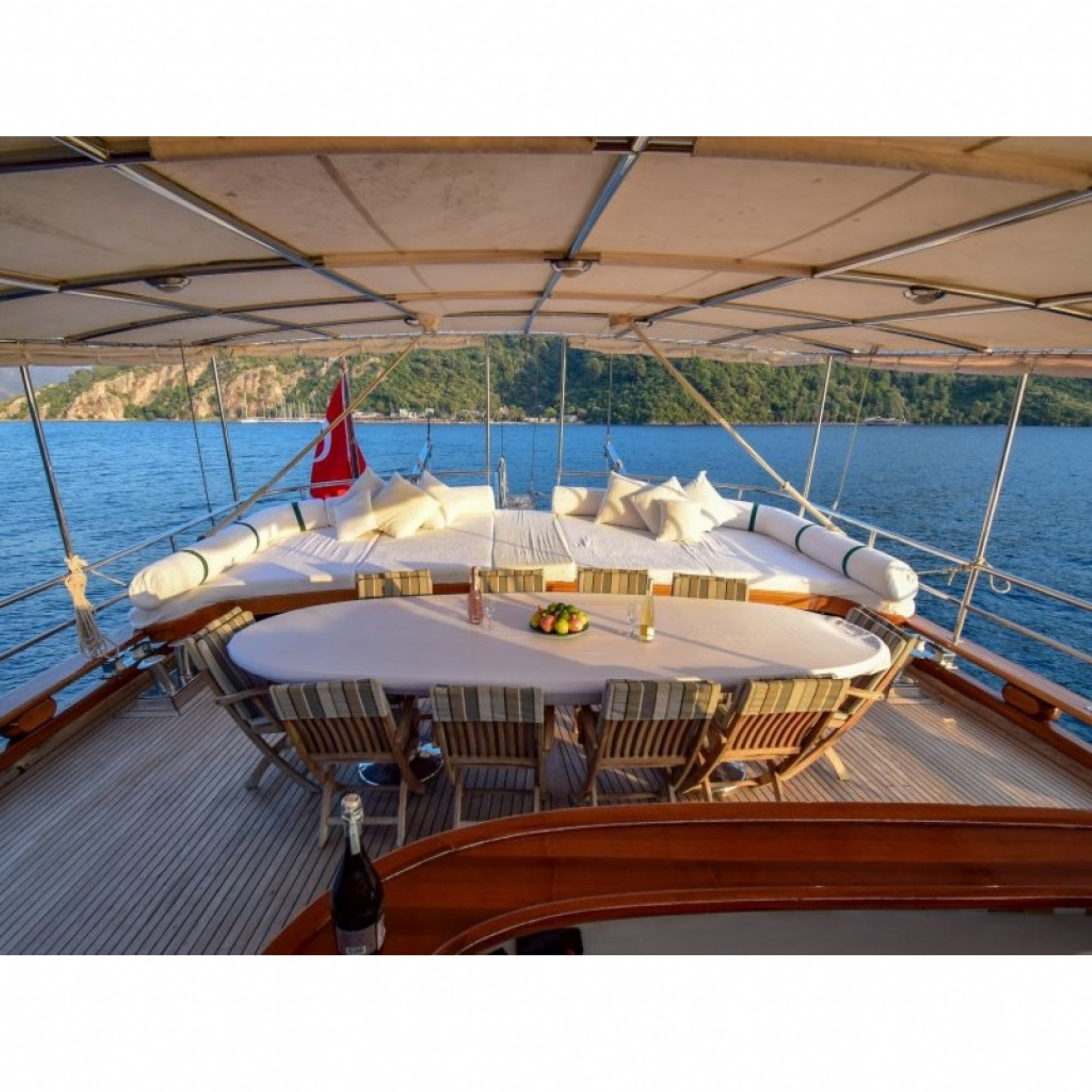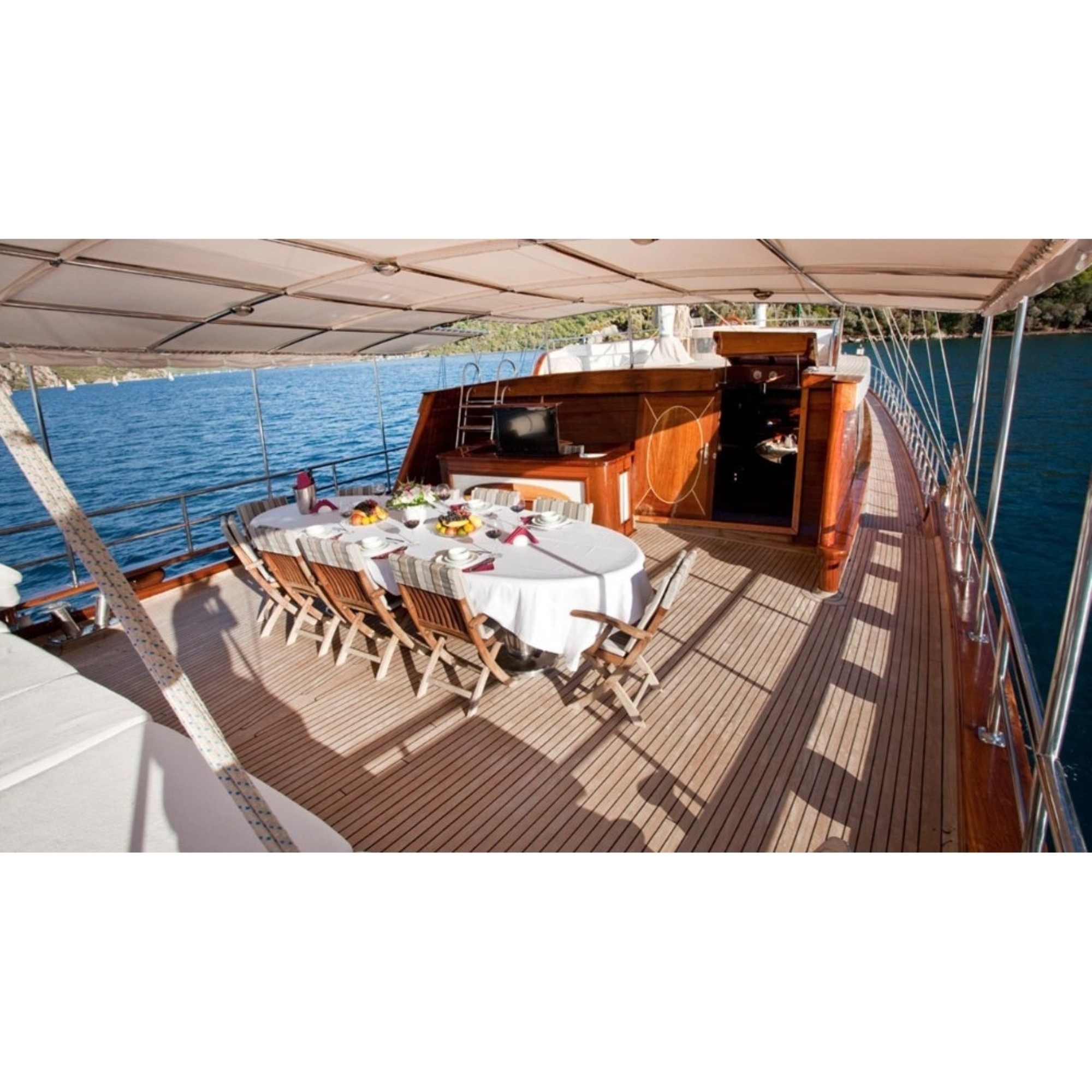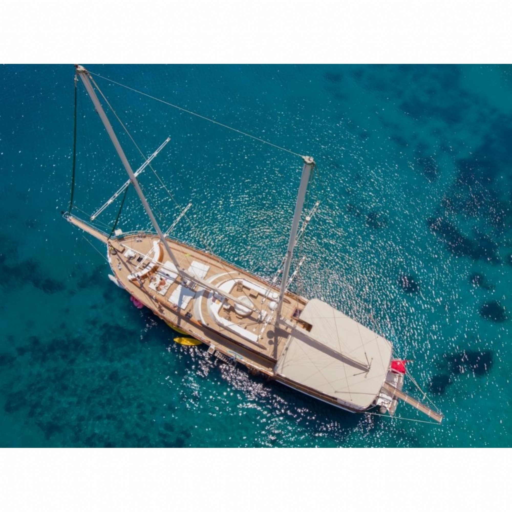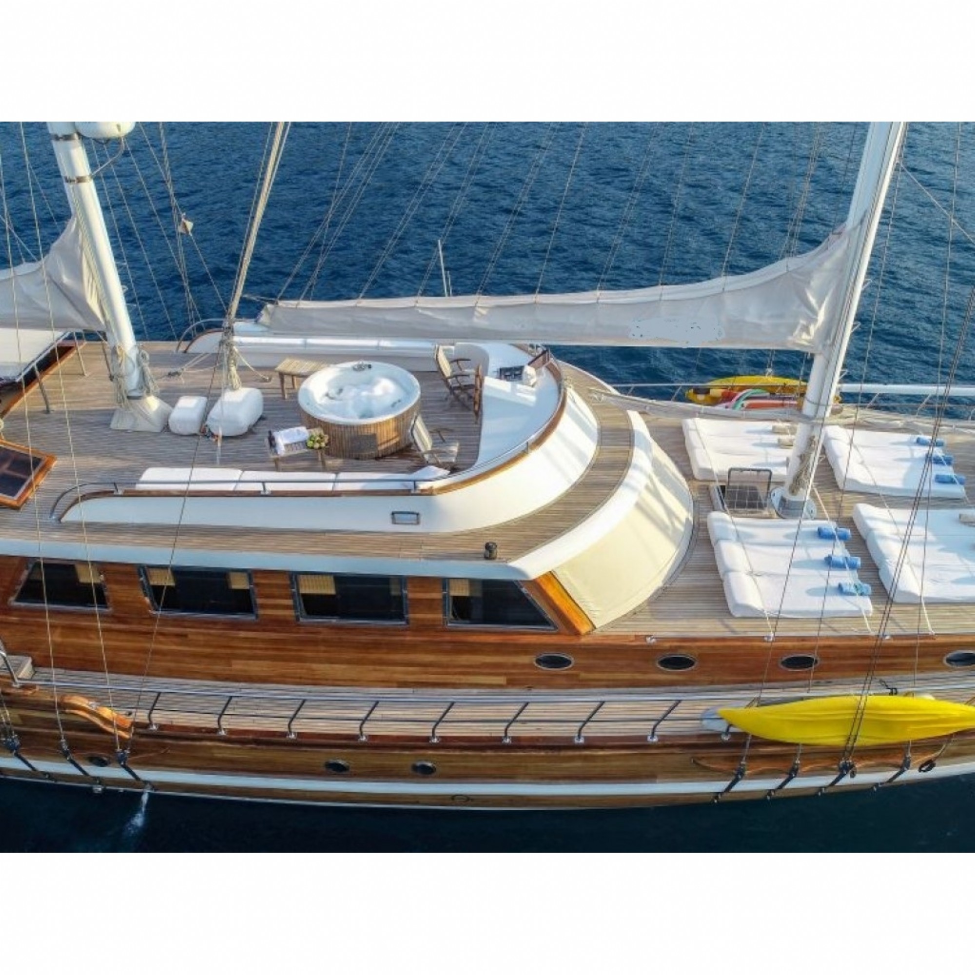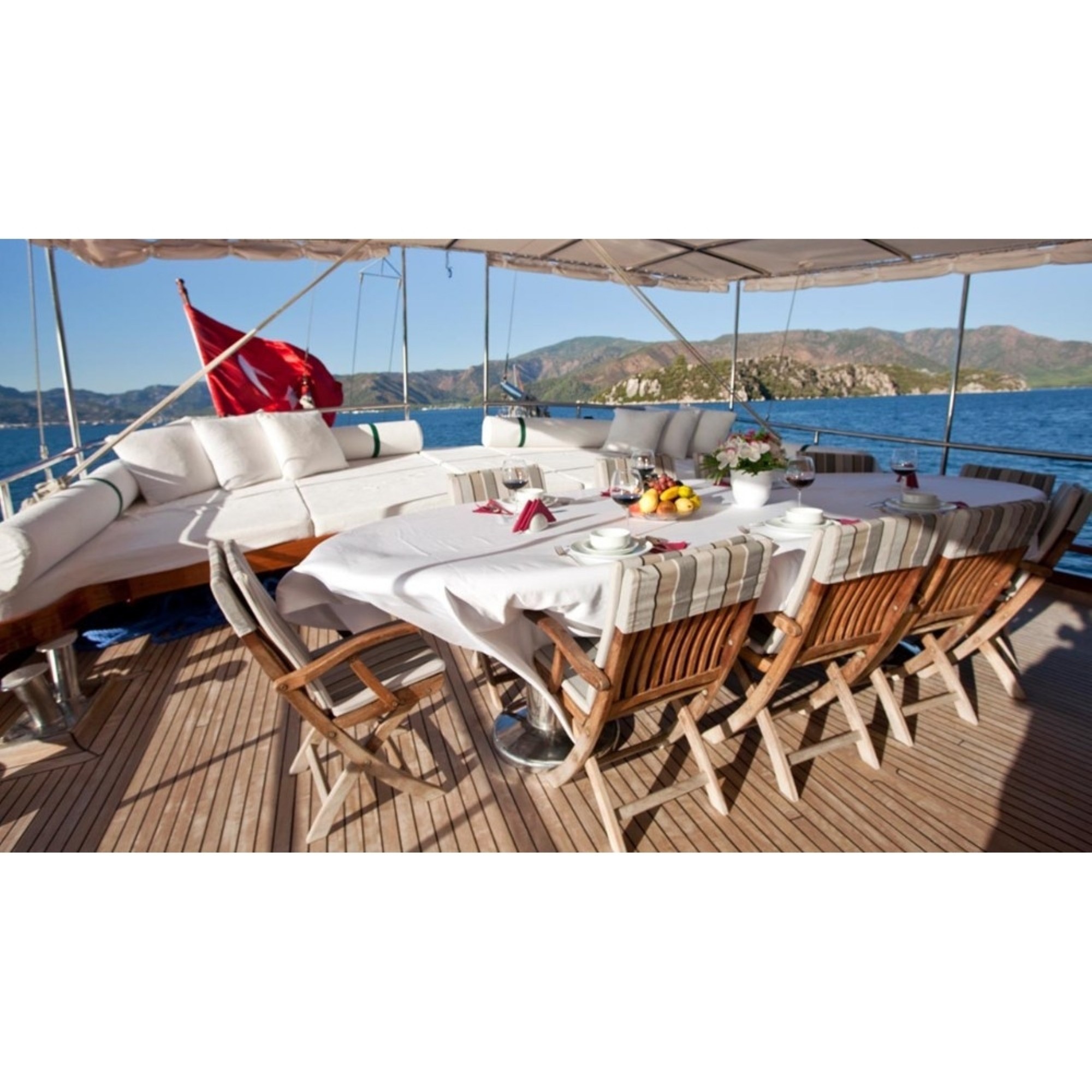 Teknemiz delüks özelliklerde olup, 6 kabini ile 12 kişilik gruplarınıza kadar hizmet verebilmektedir. Geniş ve konforlu yaşam alanları, delüks hizmet anlayışı ve eğlence alternatifleriyle huzur ve keyif dolu bir mavi yolculuk için doğru bir seçenek olan bu teknemiz hizmetinize hazırdır.