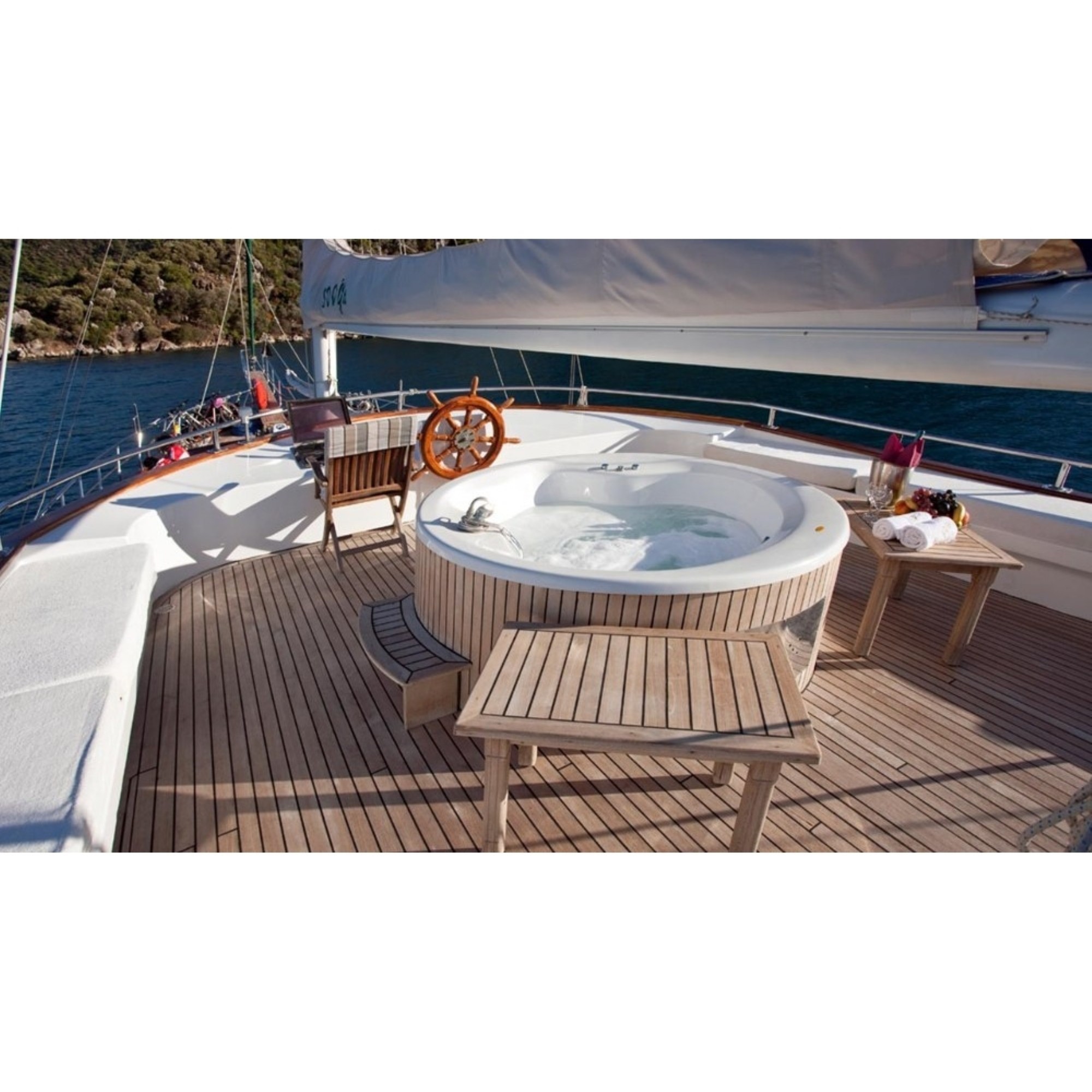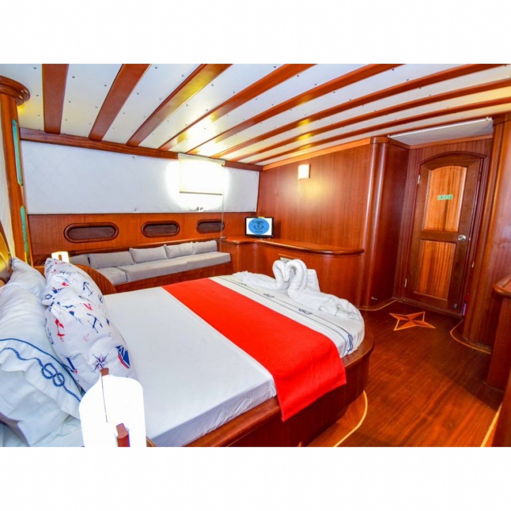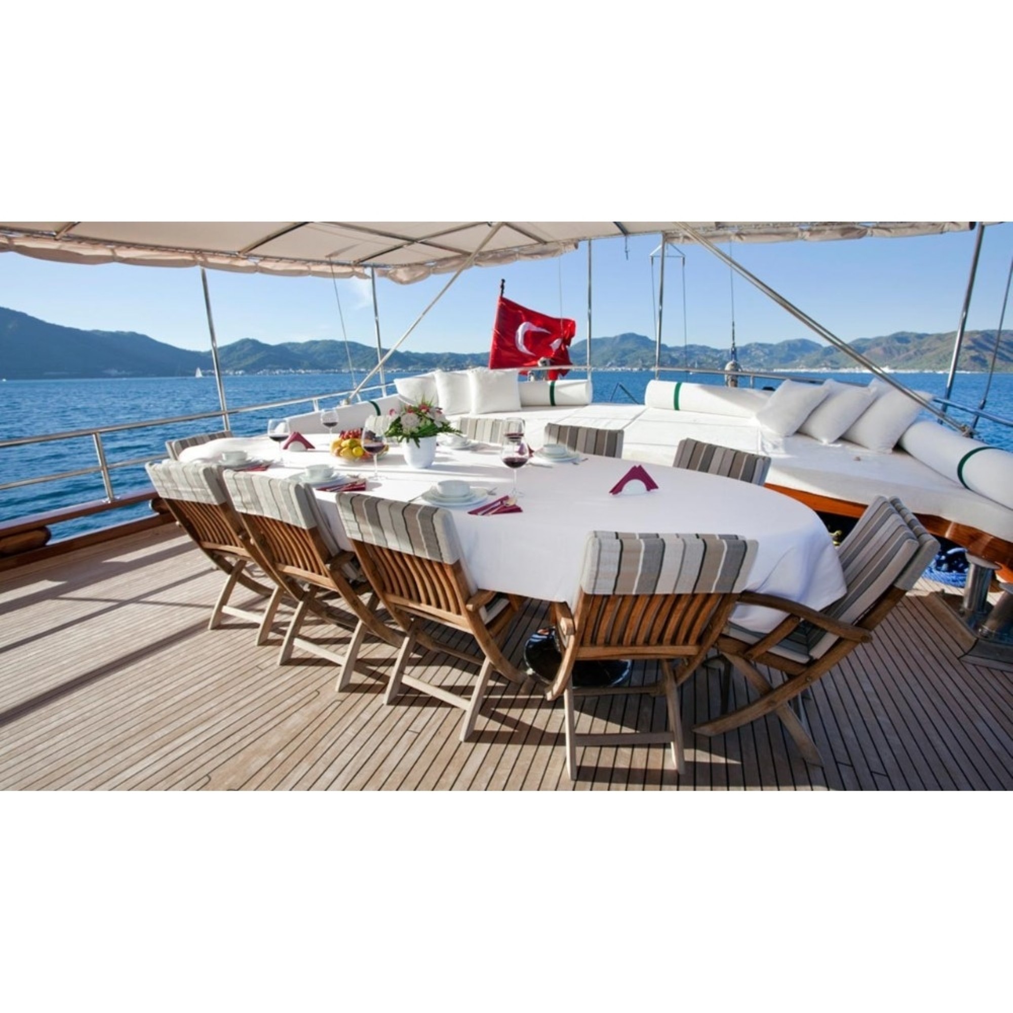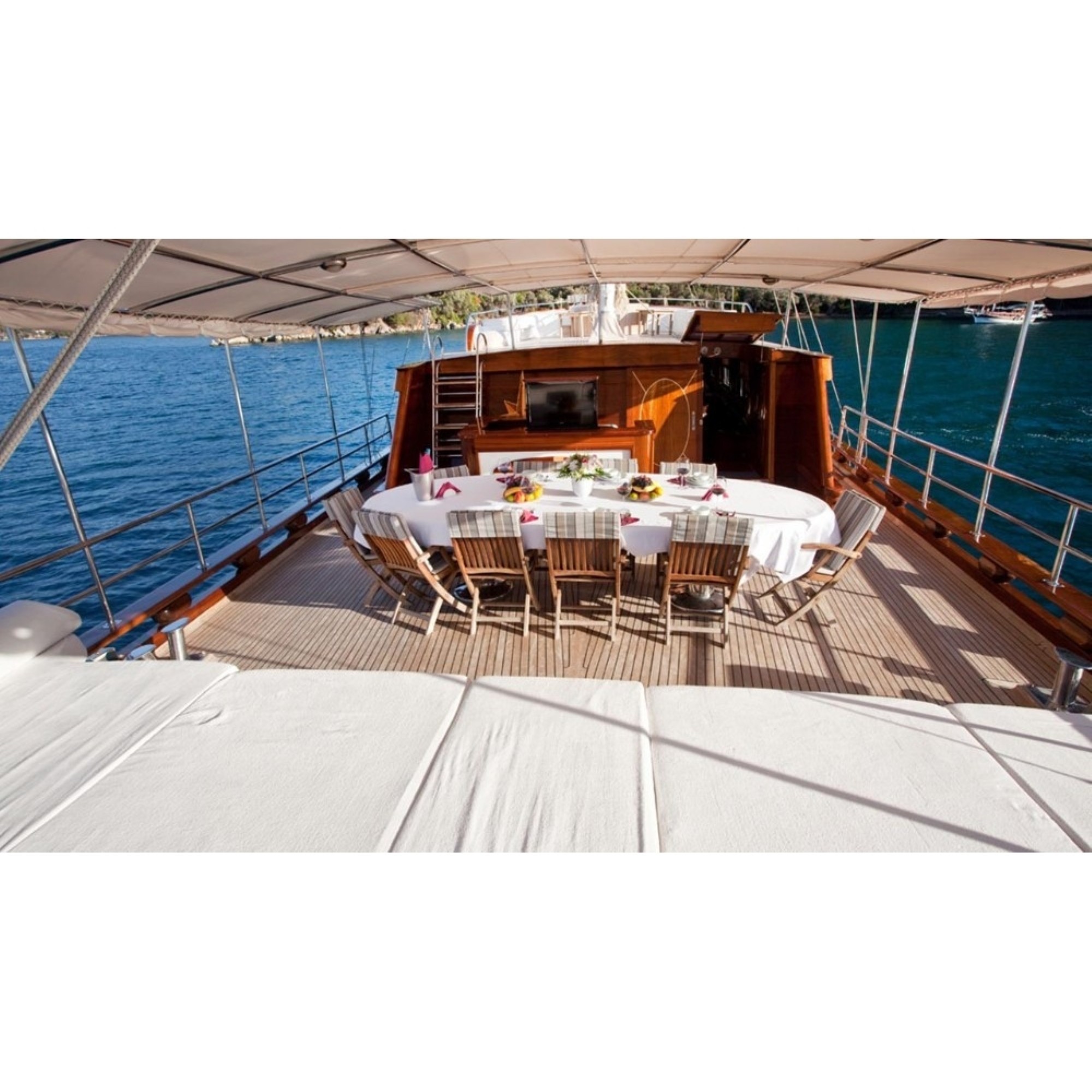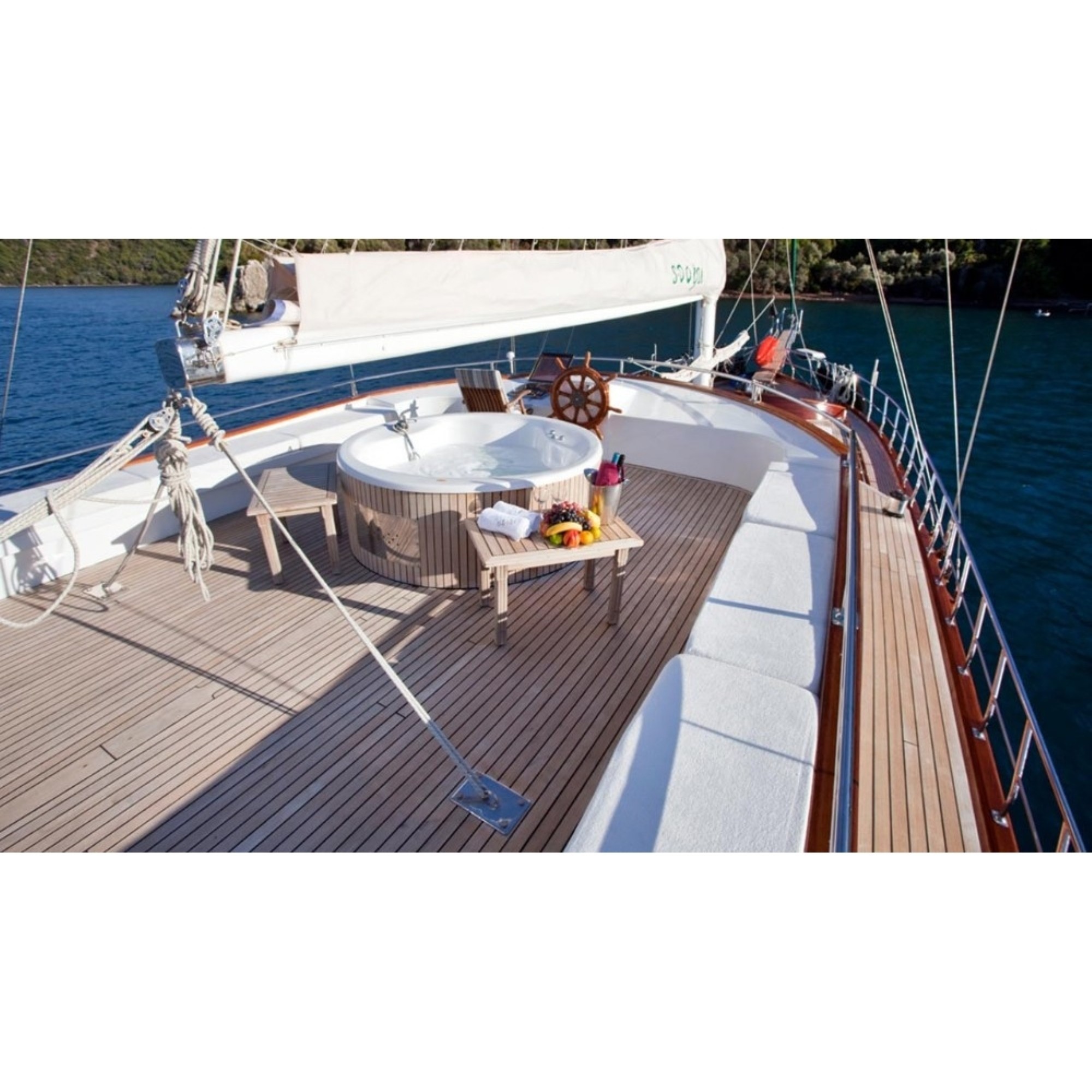 Teknemiz delüks özelliklerde olup, 6 kabini ile 12 kişilik gruplarınıza kadar hizmet verebilmektedir. Geniş ve konforlu yaşam alanları, delüks hizmet anlayışı ve eğlence alternatifleriyle huzur ve keyif dolu bir mavi yolculuk için doğru bir seçenek olan bu teknemiz hizmetinize hazırdır.