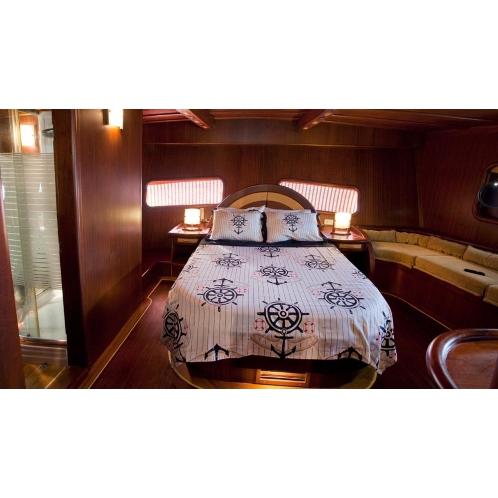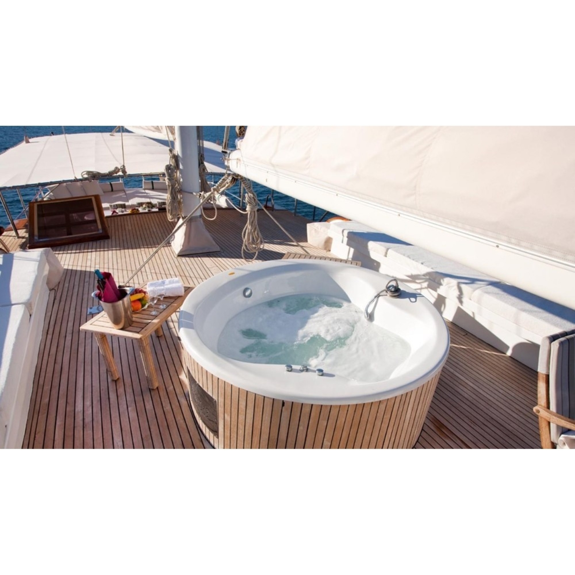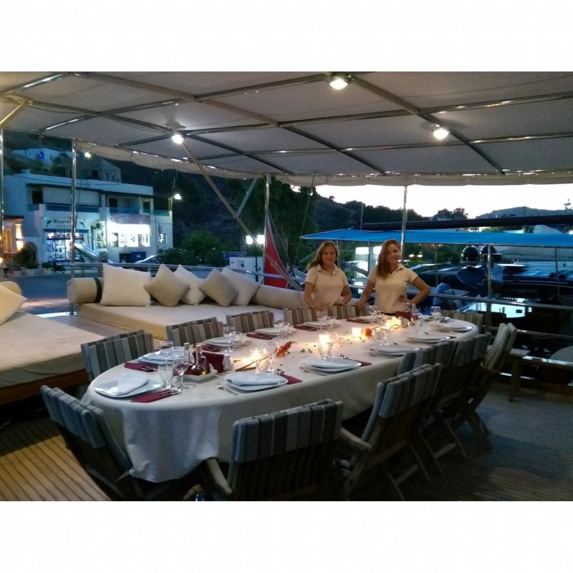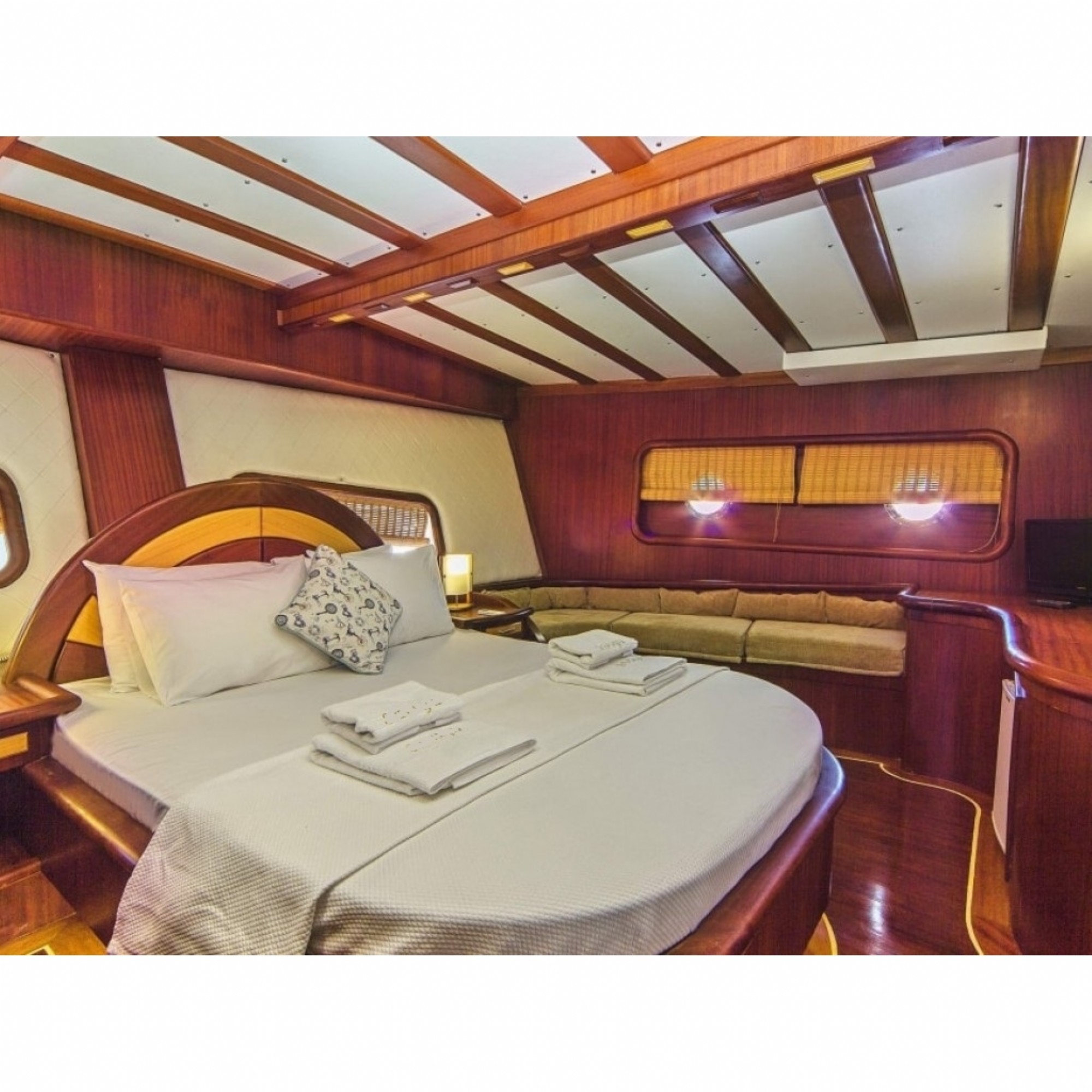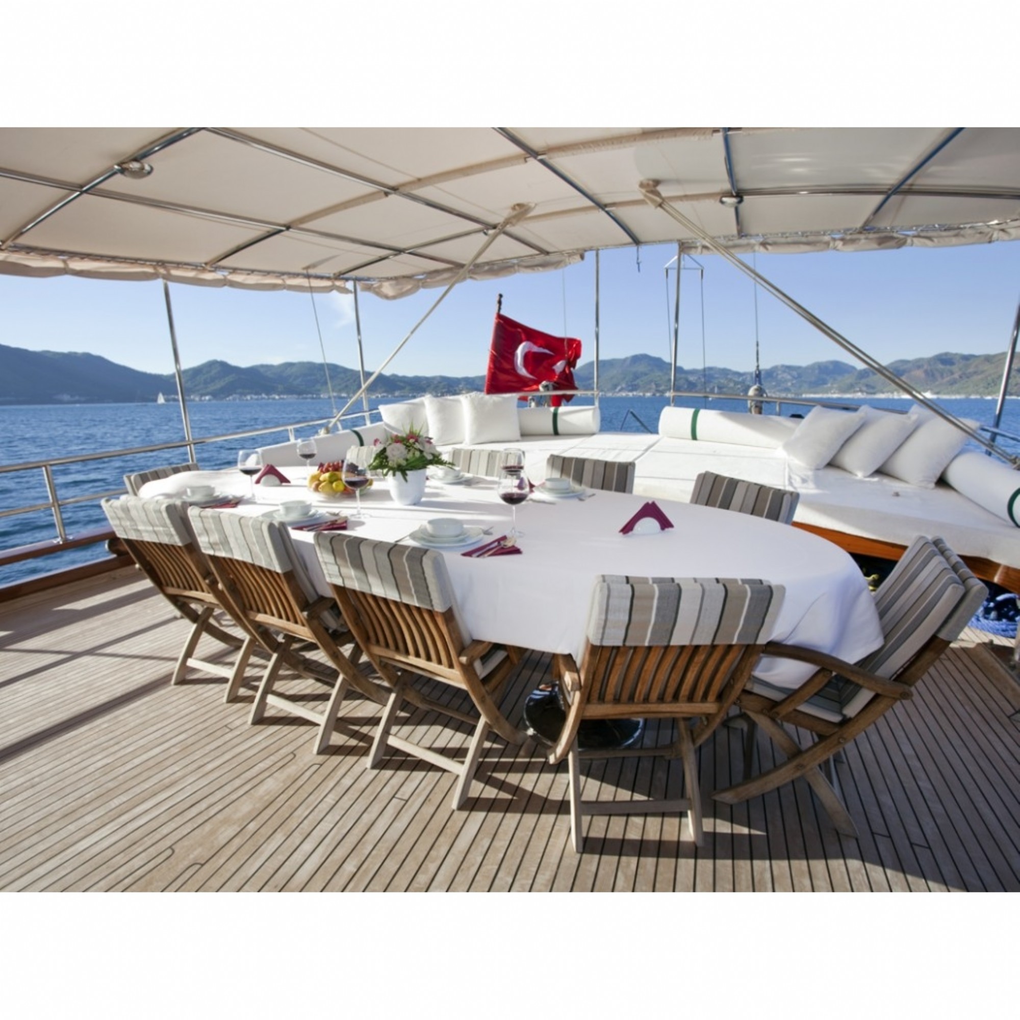Teknemiz delüks özelliklerde olup, 6 kabini ile 12 kişilik gruplarınıza kadar hizmet verebilmektedir. Geniş ve konforlu yaşam alanları, delüks hizmet anlayışı ve eğlence alternatifleriyle huzur ve keyif dolu bir mavi yolculuk için doğru bir seçenek olan bu teknemiz hizmetinize hazırdır.