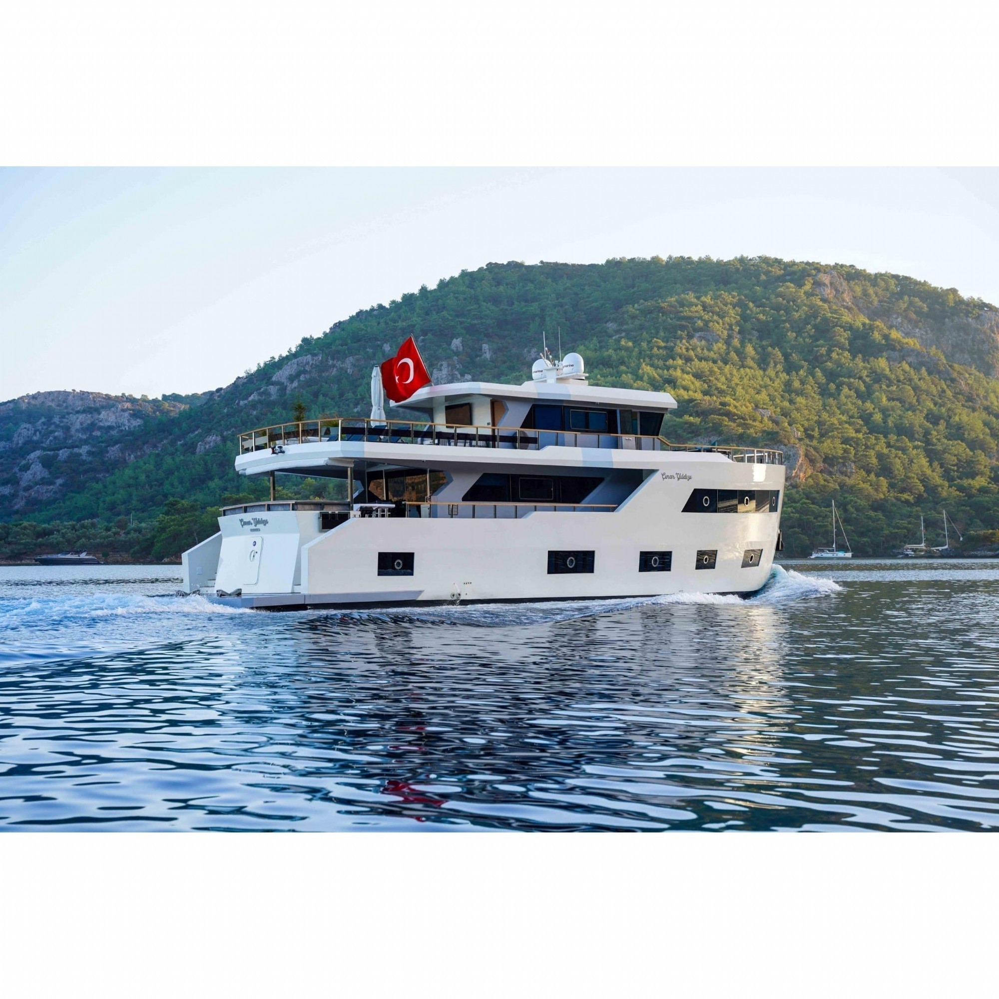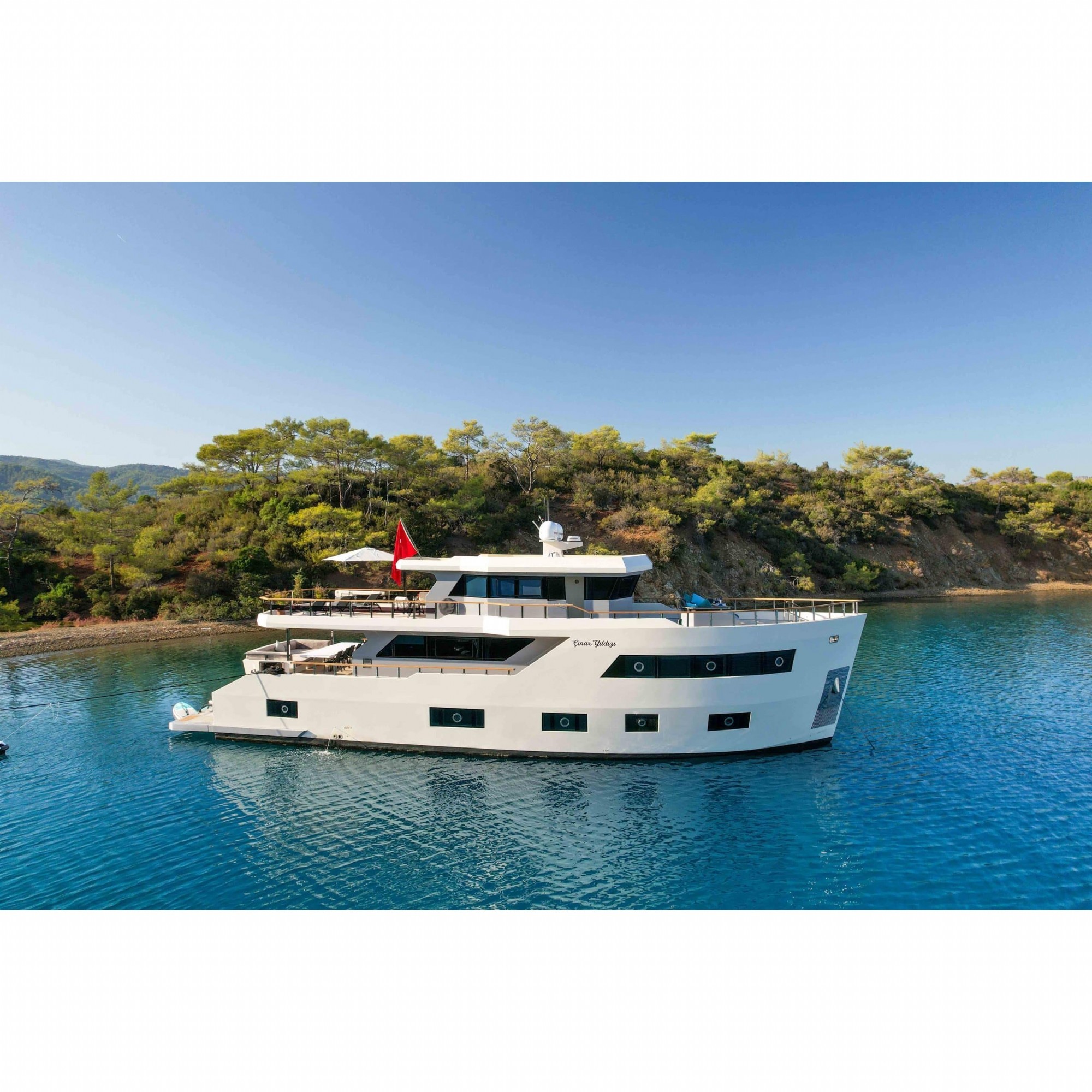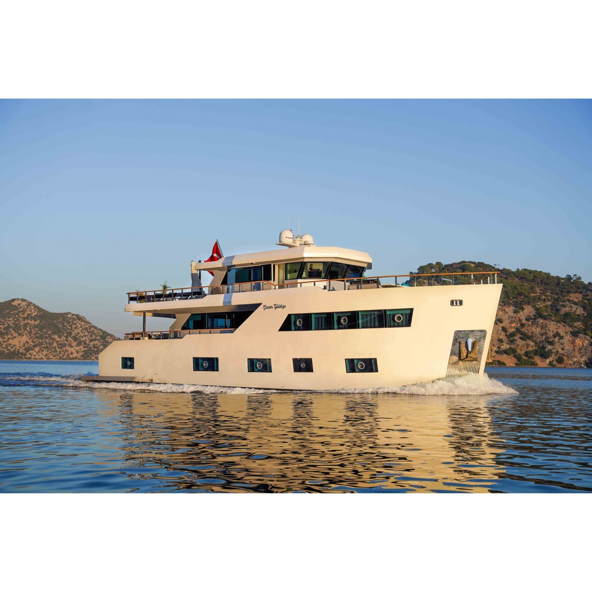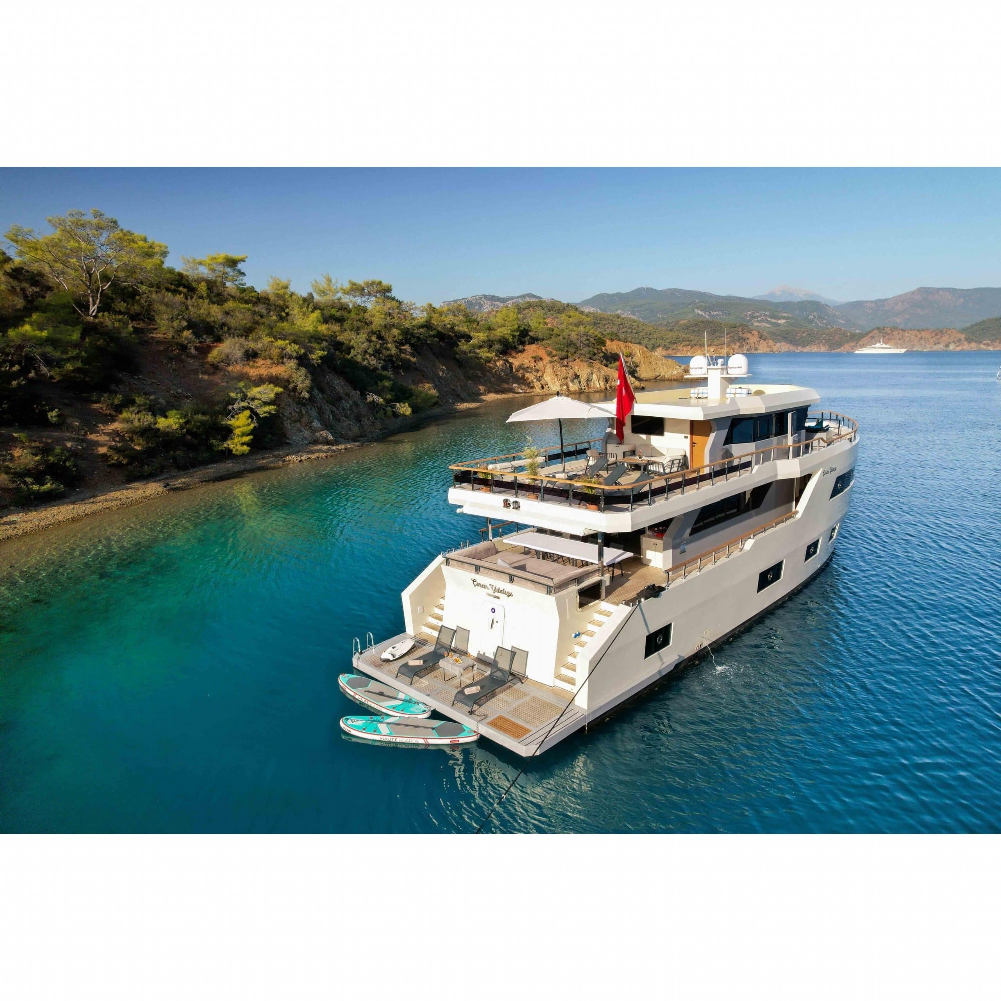 Motoryatımız ultralüks özelliklerde olup, 5 kabini ile 11 kişilik gruplarınıza kadar hizmet verebilmektedir. Kalabalık grubunuzla eğlence dolu bir mavi yolculuk ile kaliteyi aynı yerde bulabileceğiniz bu teknemiz ile mavi koyları keşfe çıkın.