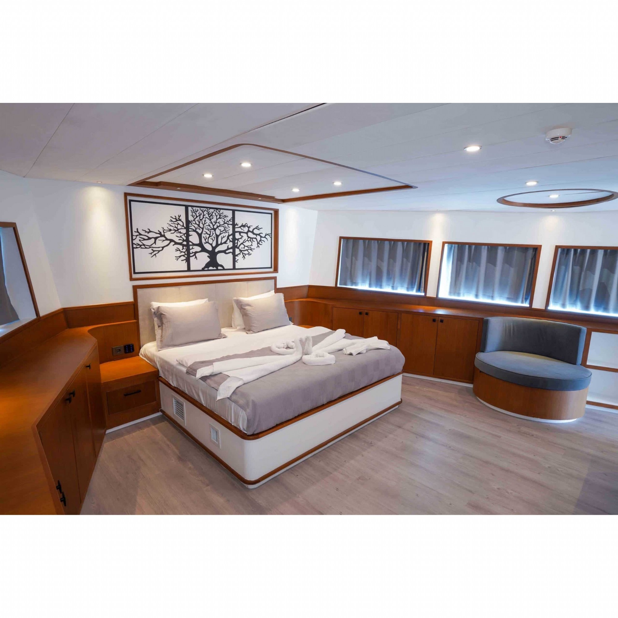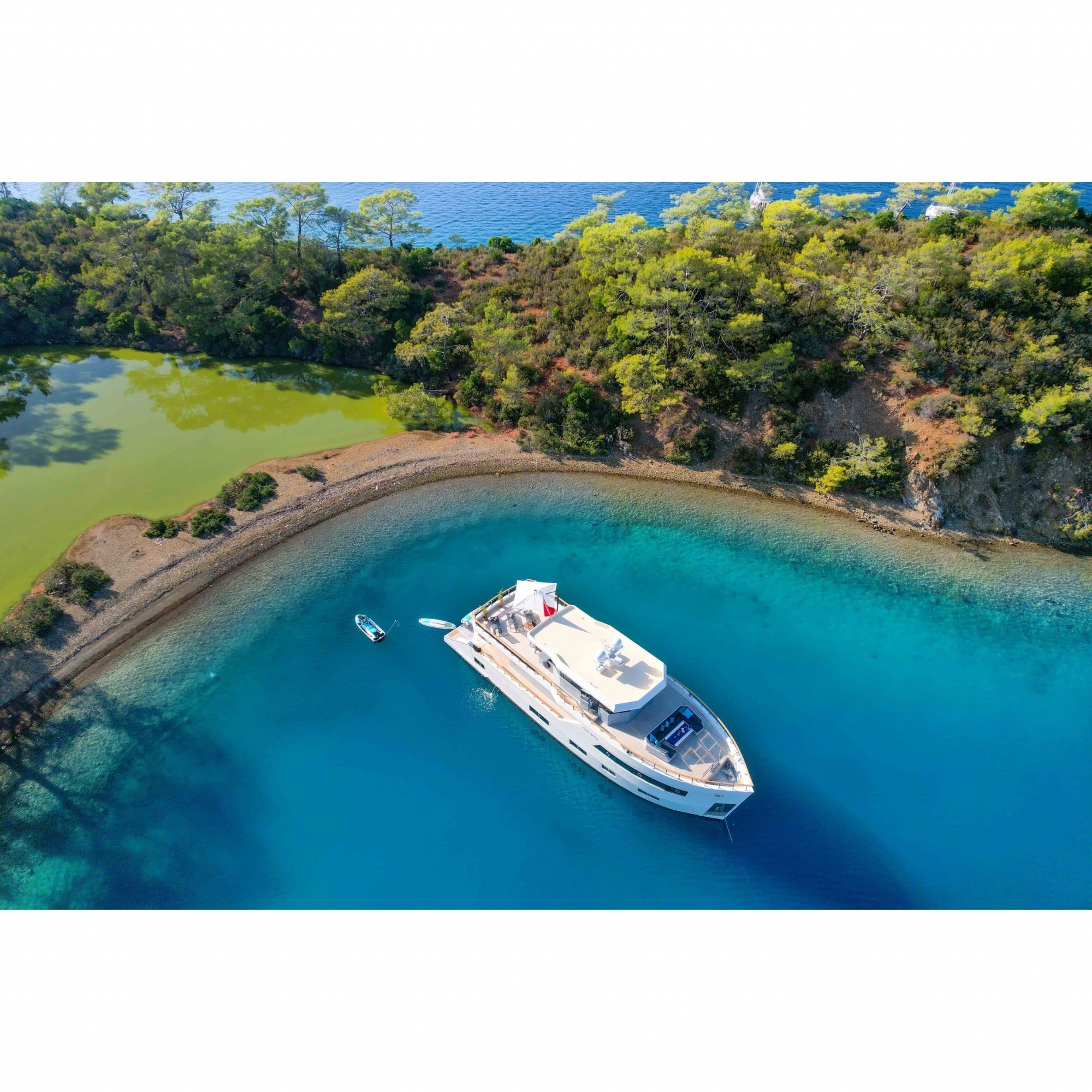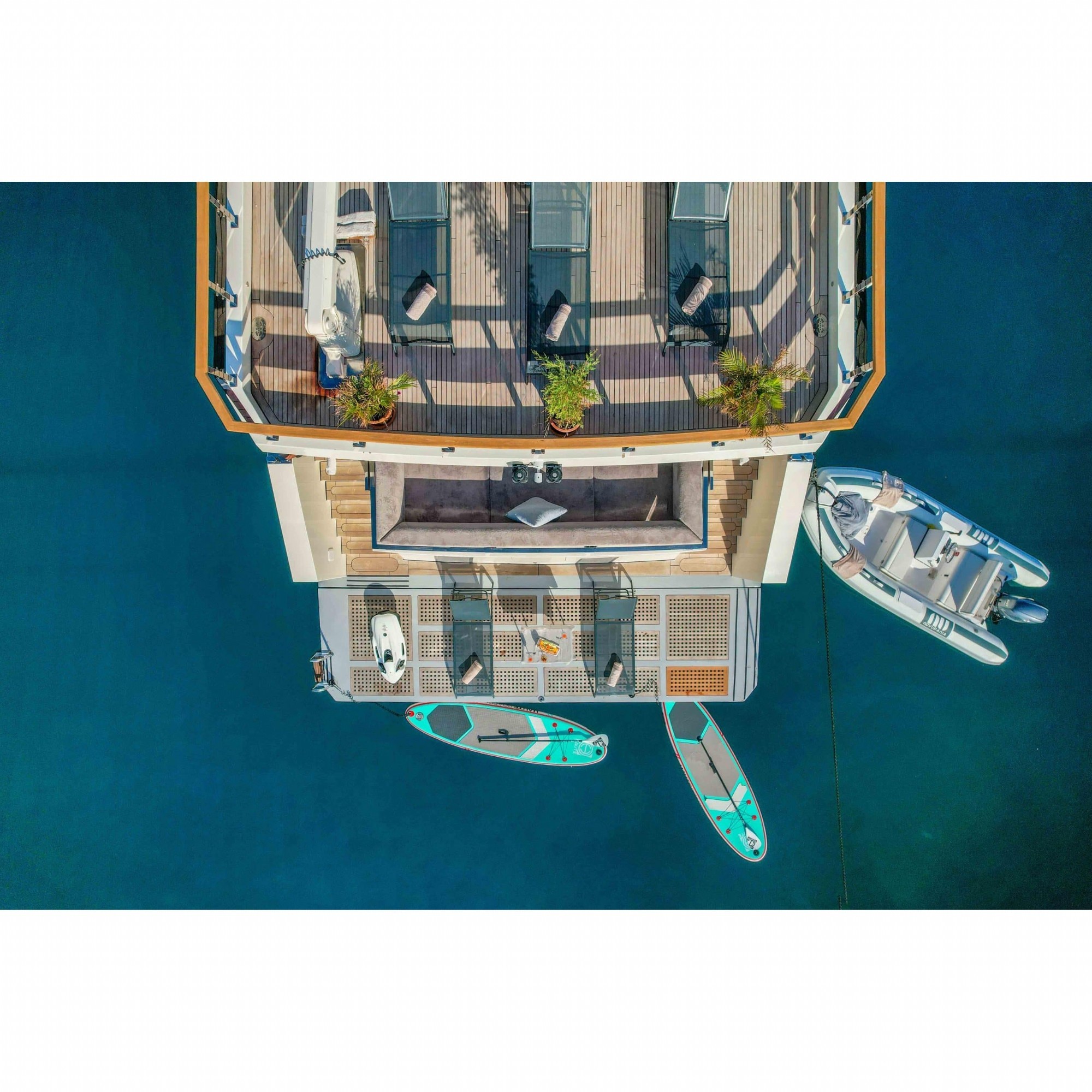 Motoryatımız ultralüks özelliklerde olup, 5 kabini ile 11 kişilik gruplarınıza kadar hizmet verebilmektedir. Kalabalık grubunuzla eğlence dolu bir mavi yolculuk ile kaliteyi aynı yerde bulabileceğiniz bu teknemiz ile mavi koyları keşfe çıkın.