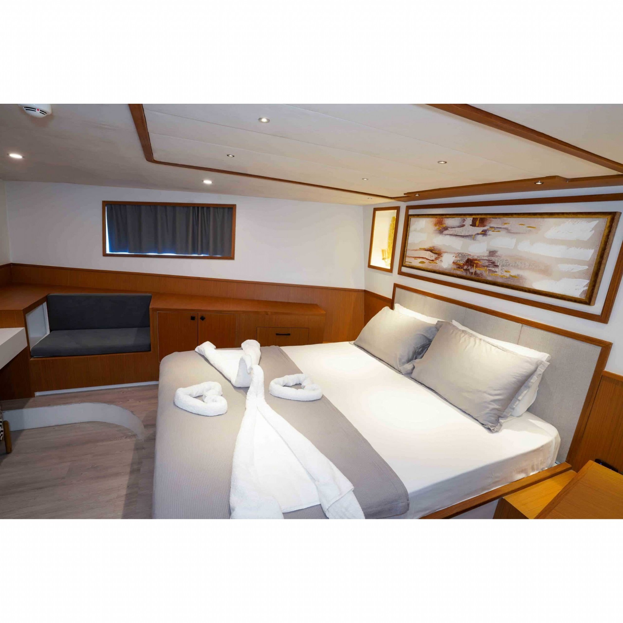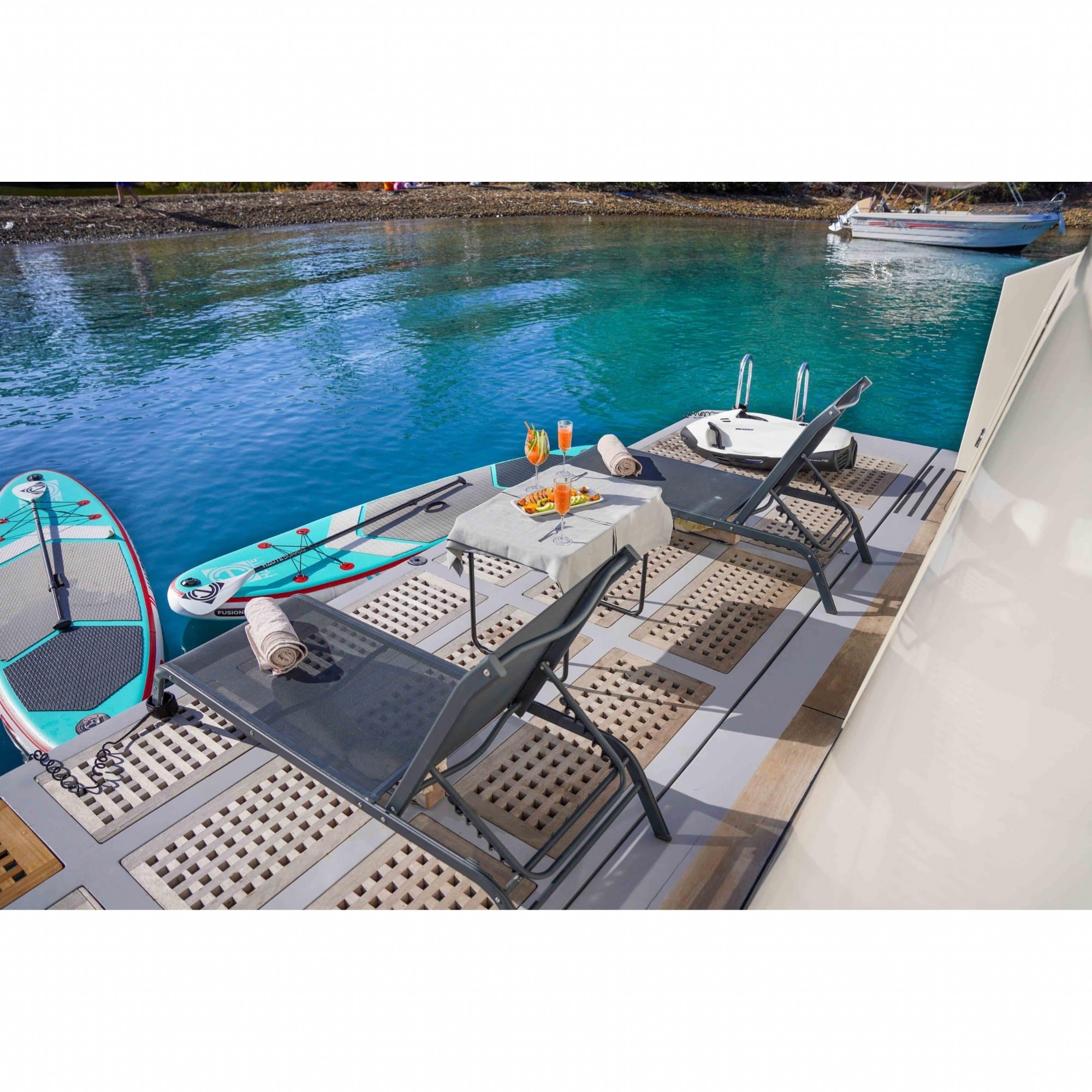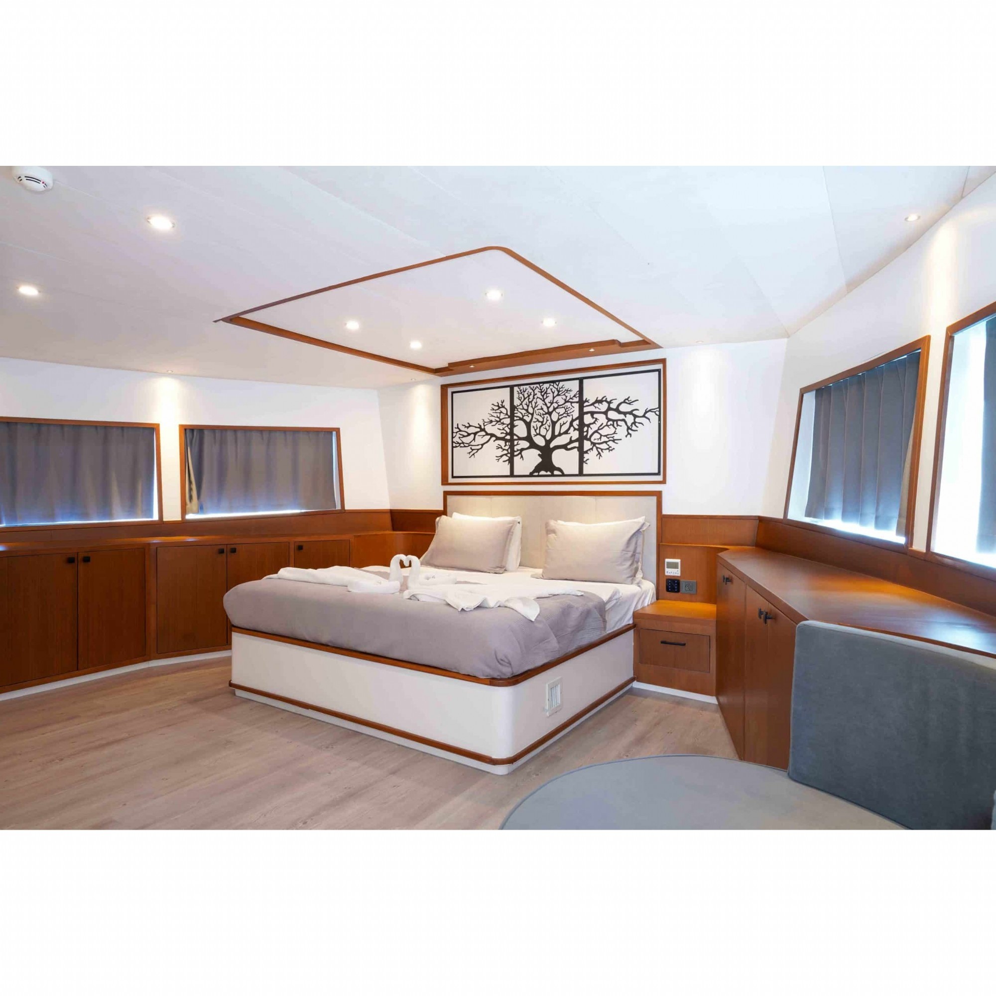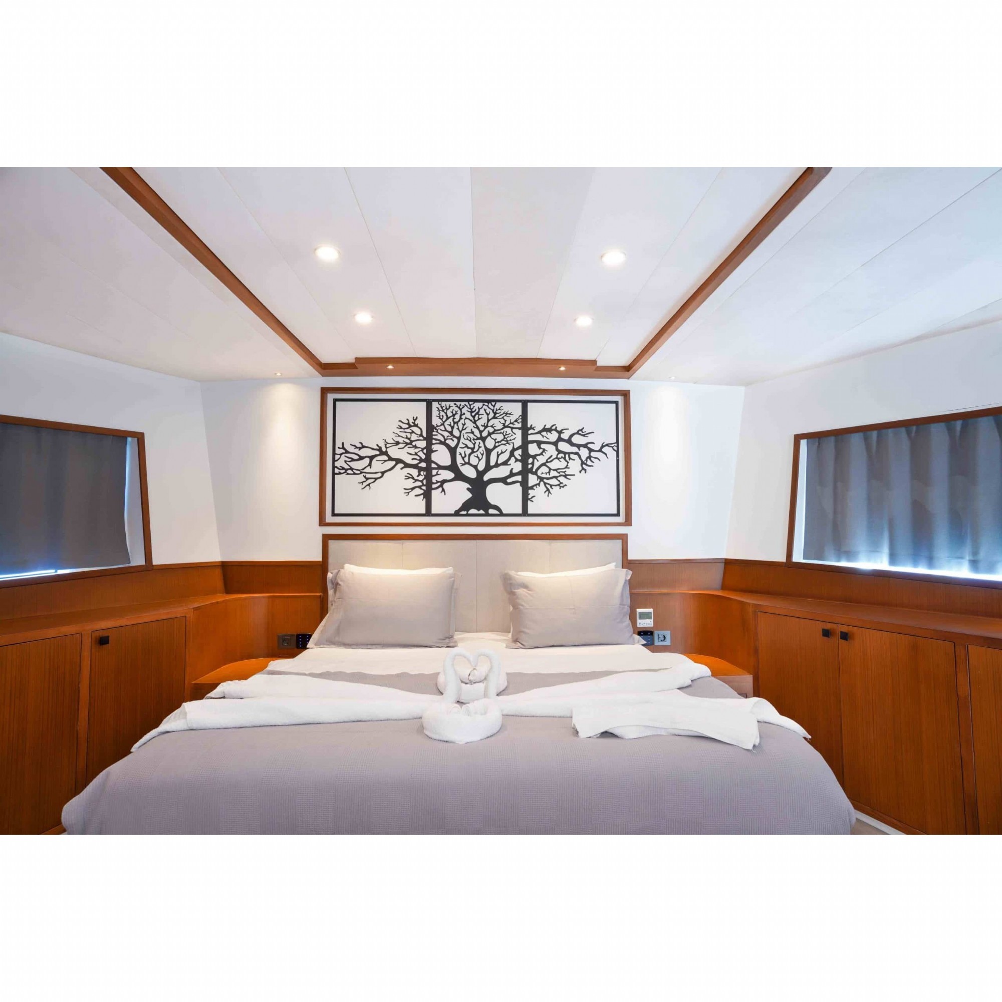 Motoryatımız ultralüks özelliklerde olup, 5 kabini ile 11 kişilik gruplarınıza kadar hizmet verebilmektedir. Kalabalık grubunuzla eğlence dolu bir mavi yolculuk ile kaliteyi aynı yerde bulabileceğiniz bu teknemiz ile mavi koyları keşfe çıkın.