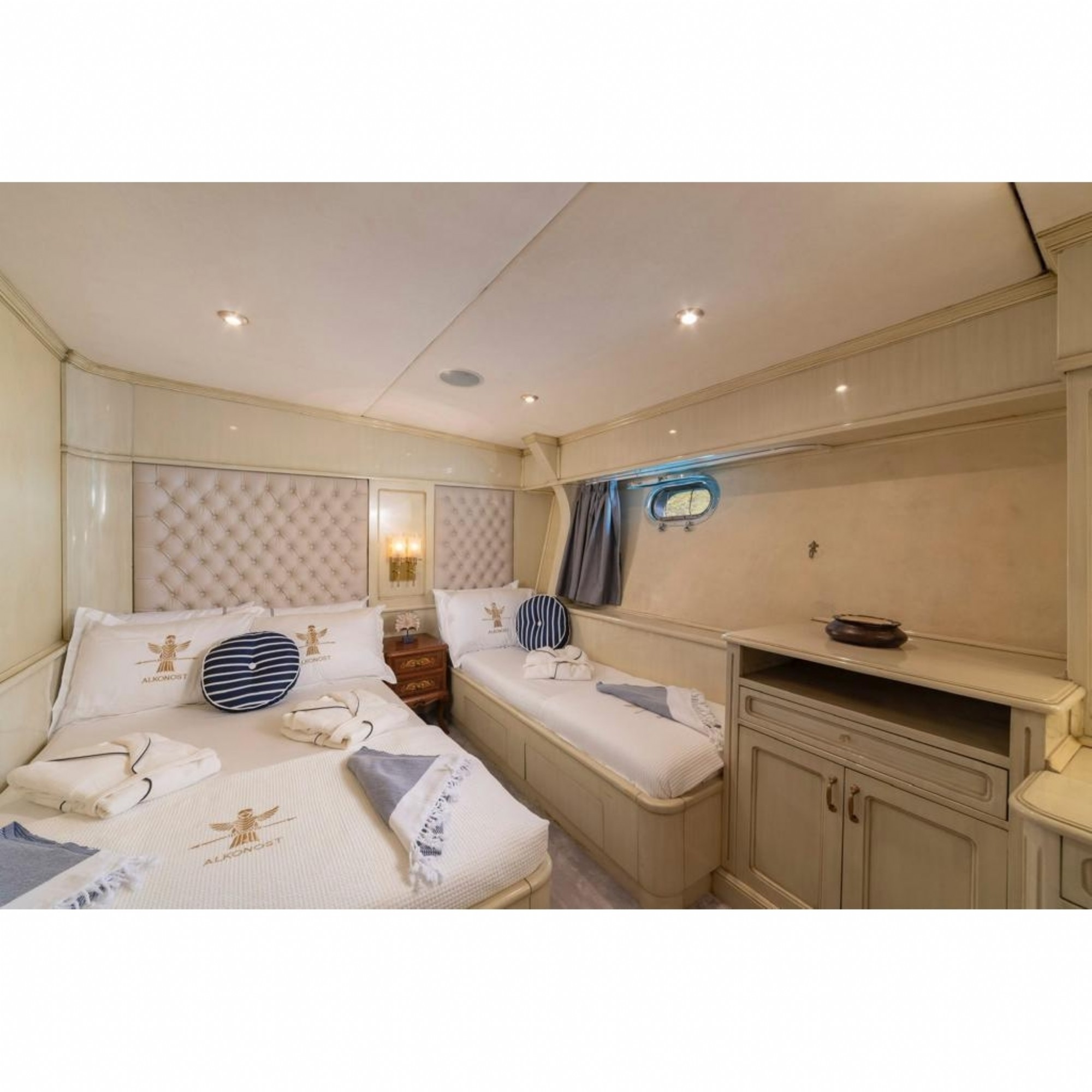 48 metre uzunluğundaki motoryatımızda 1 Master, 2 Triple , 1 vıp ve 1 twin kabin bulunmaktadır. Siz değerli misafirlerimiz için 12 kişiye kadar konaklama imkanımız bulunmaktadır.