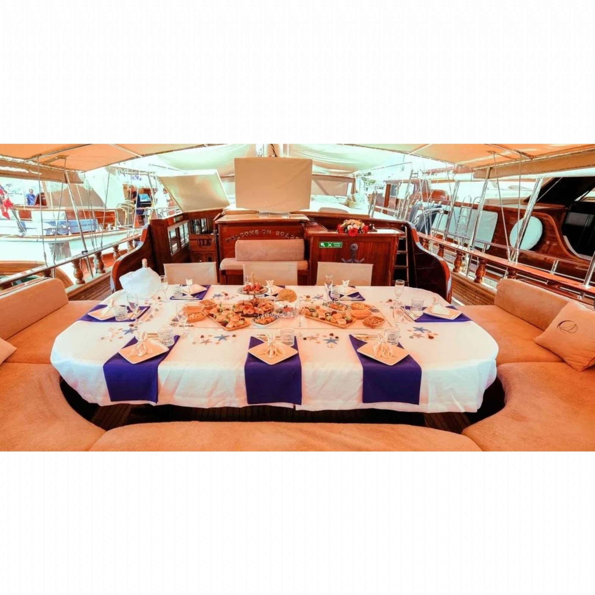 Teknelerimizle mavi yolculuk yaparken ihtiyacınız olan kumanyayı kendiniz temin edebileceğiniz gibi, seçeceğiniz menülere istinaden kaptan ve ya aşçılarımızın miktarlandırmasına göre ihtiyacınız olan kumanyayı anlaşmalı alışveriş merkezinden temin ederiz. Her koşulda teknelerimizde kumanyanızı muhafaza eder ve alanında profesyonel mürettebatımız en iyi şekilde hazırlayıp servisini yapacaktır.