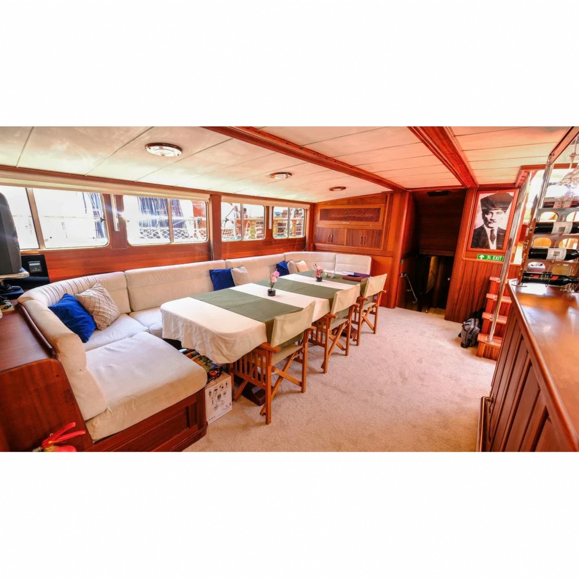 2019 yılında tamamen yenilenen guletimiz modern ve geniş kabinler, salon ve güvertesi ile misafirlerin konforu için özel olarak dizayn edilmiştir.Her kamarada özel duş ve tuvalet bulunmakta olup tur tüm kabinler klimalıdır.Tam donanımlı ayrı bir mutfak, açık ve kapalı yemek bölümü ile klimalı bir salonu bulunmaktadır. Salonda TV,DVD, müzik sistemi bulunmaktadır. Ayrıca güvertede geniş bir alanda yeterli güneşlenme minderleri mevcuttur.