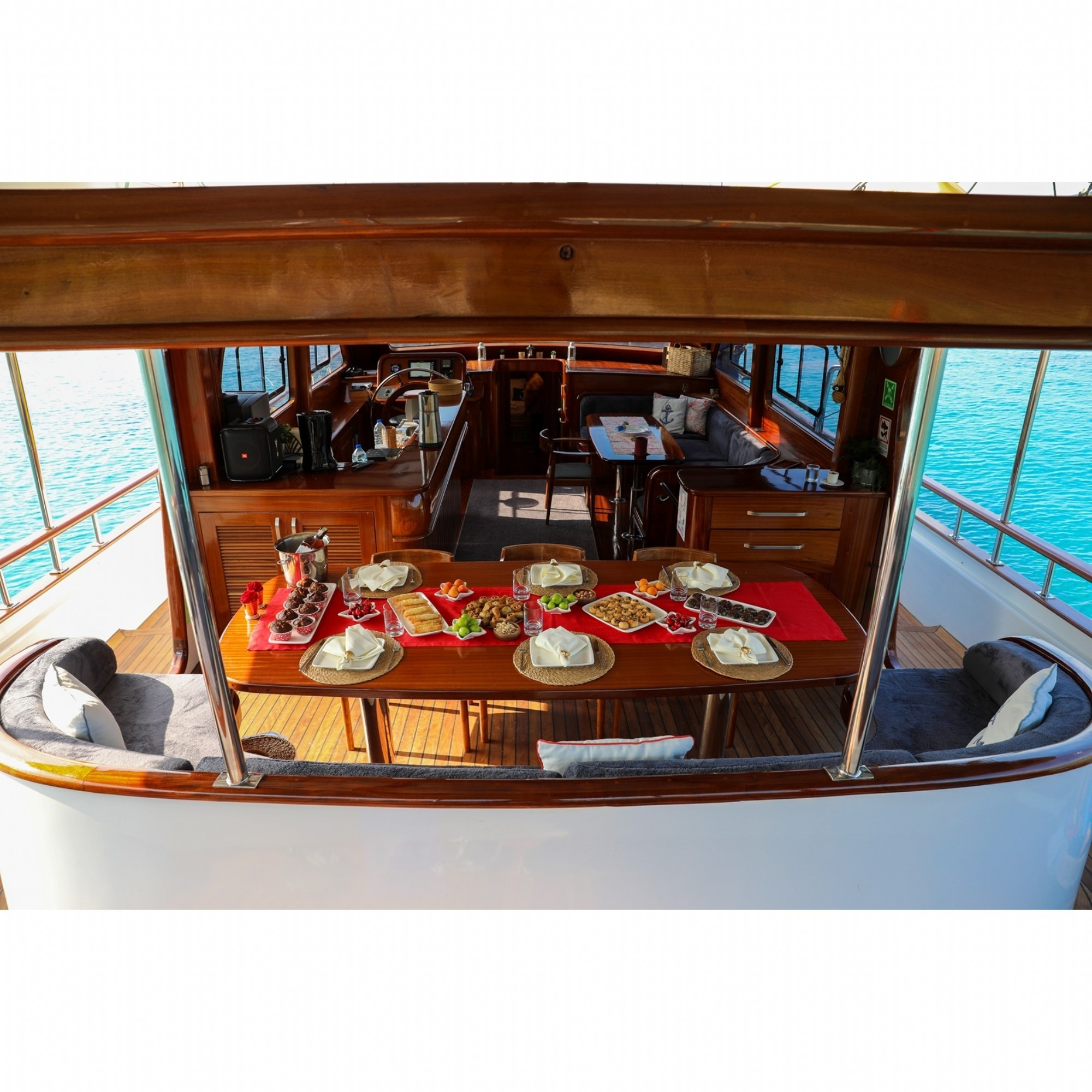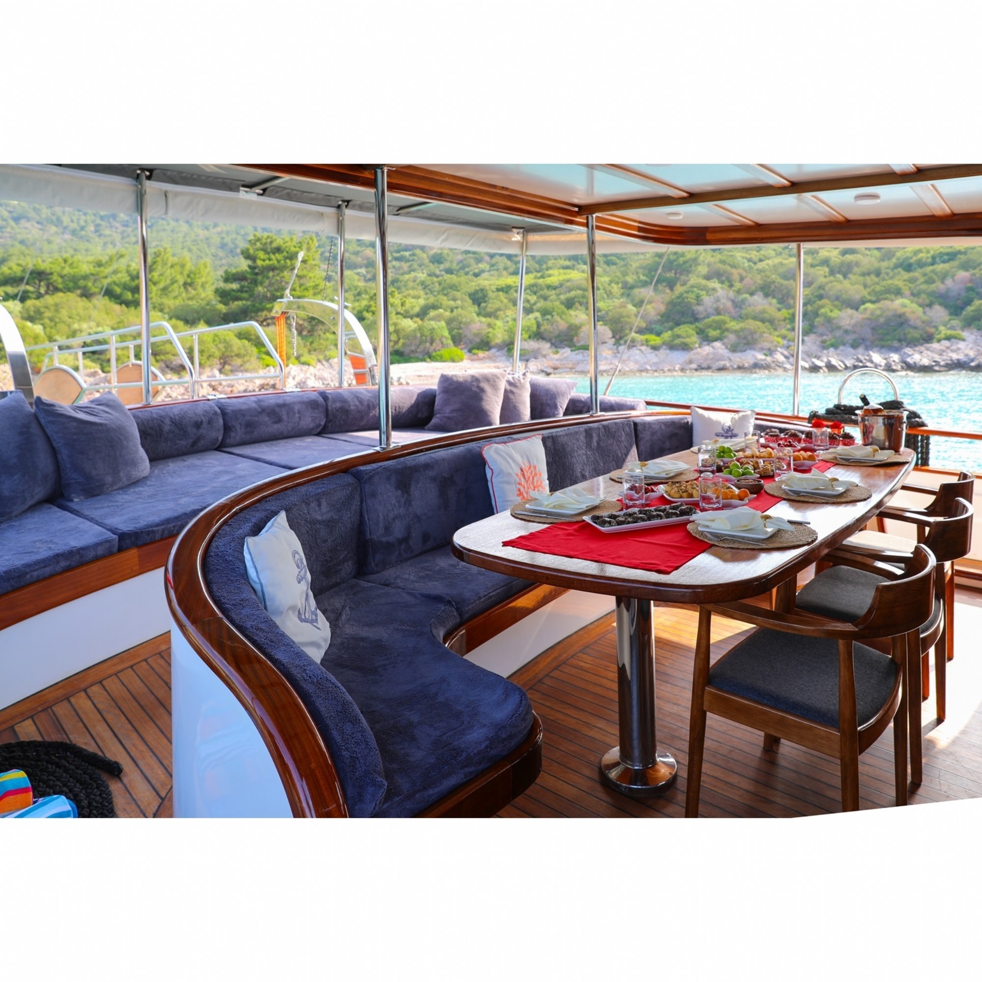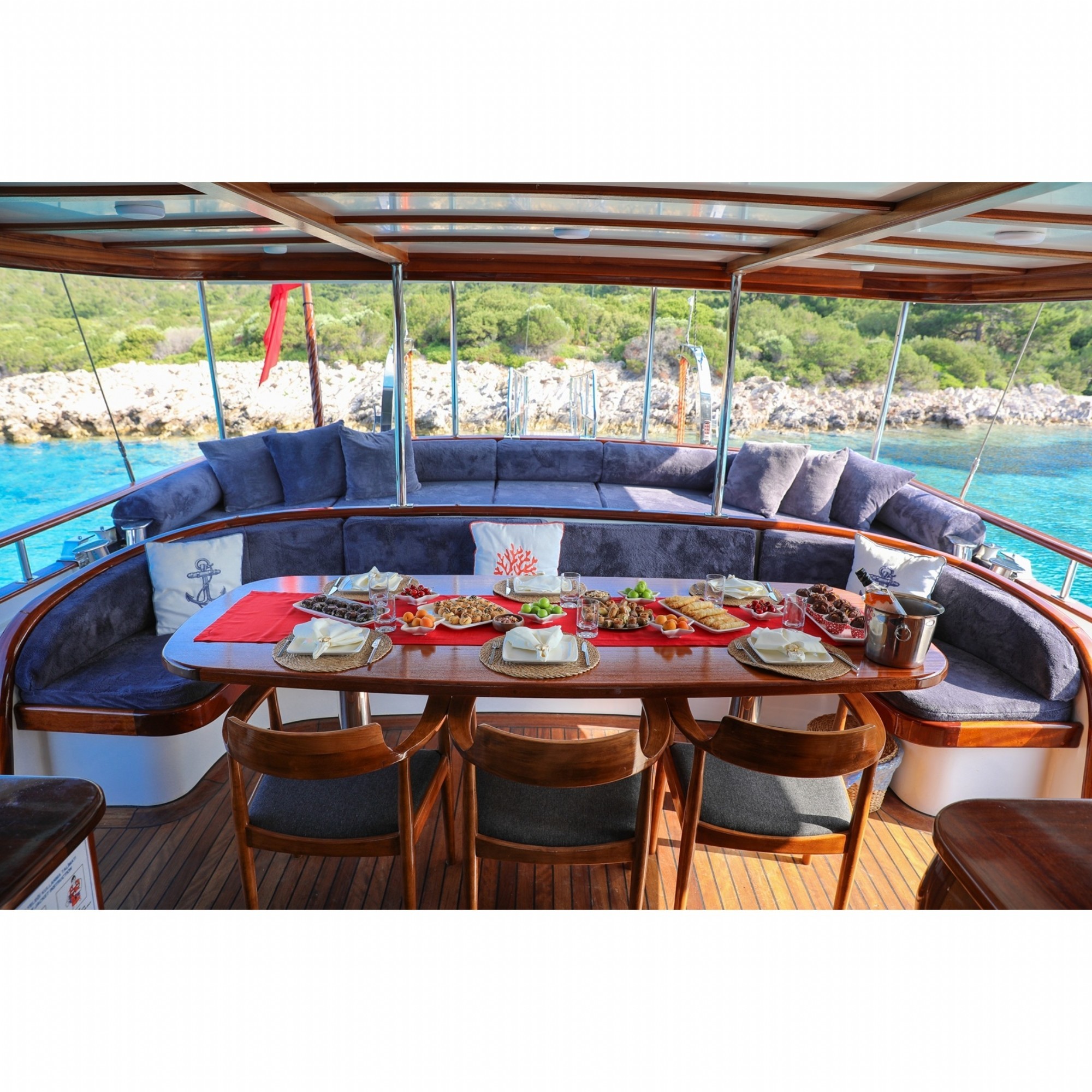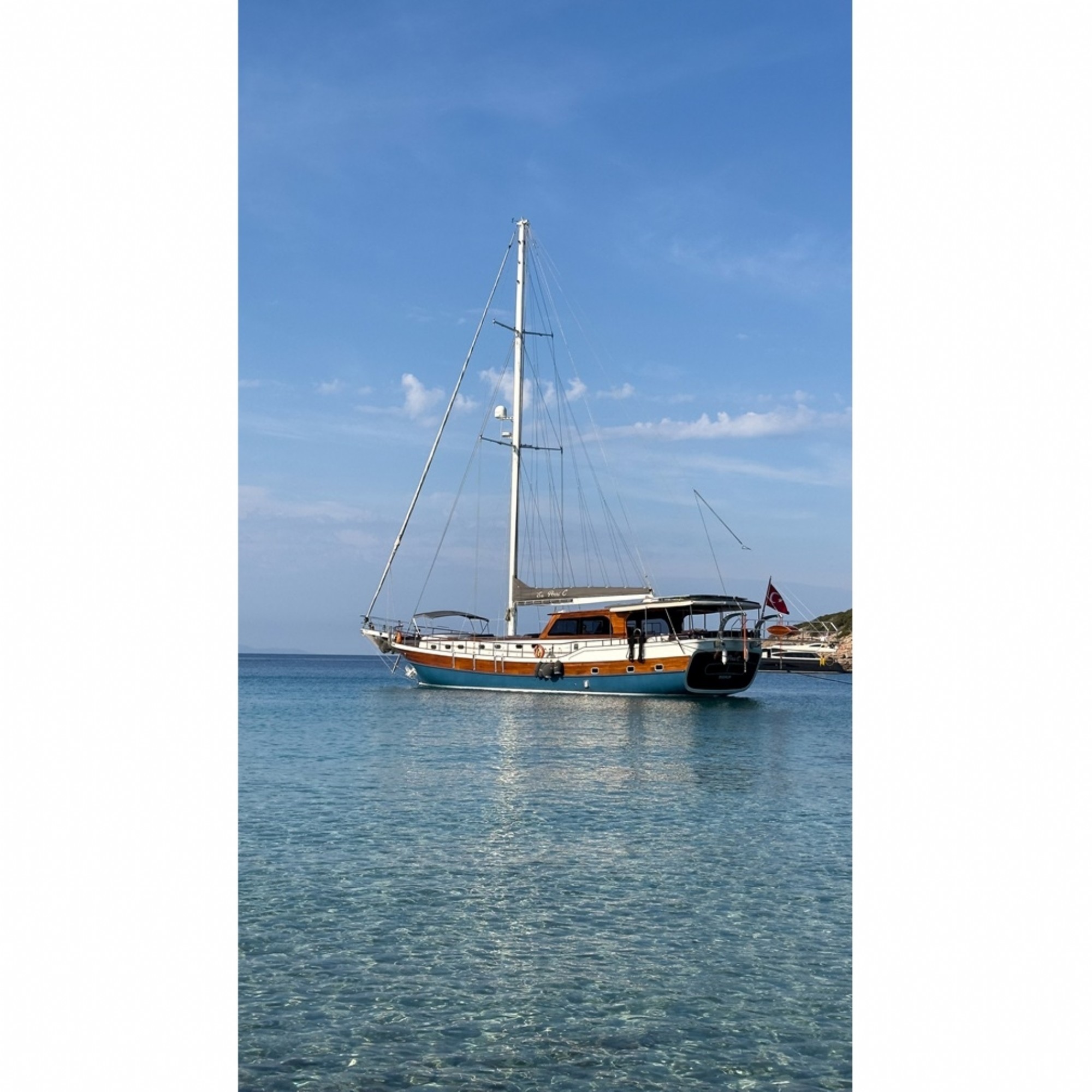 Rüyalarınızdaki tatili sizlere sunmak için özenle hazırlanmış olan teknemiz 2023 yılında inşa edilmiş ve suya kavuşmuştur. 22 metre , 4 kabin , 8 kişilik full klimalı konforlu teknemizle Ege ve Akdenizin en güzel koylarında mavi yolculuğun keyfini çıkartın. Teknemizde 1 kaptan, 1 aşçı, 2 gemici bulunmakta ve tatiliniz süresince sizlere en iyi hizmeti vererek unutulmaz anılarla ayrılacağınız bir mavi yolculuk yaşayaanıza yardımcı olmaktadır. Bodrum, Marmaris, Fethiye, Göcek ve Yunan adalarının en güzel koylarında mavi yolculuğu bizimle yaşayın.