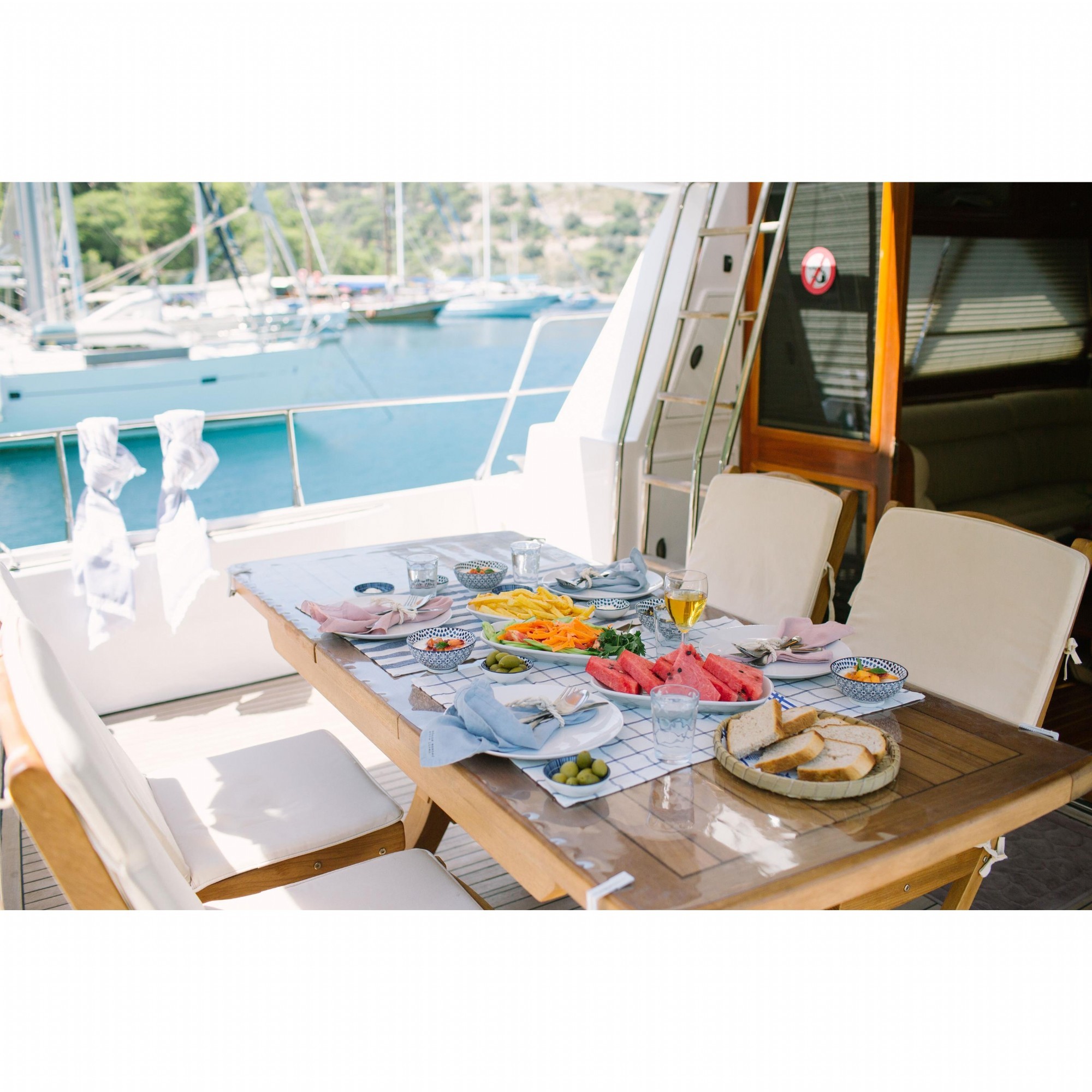 Teknelerimizle mavi yolculuk yaparken ihtiyacınız olan kumanyayı kendiniz temin edebileceğiniz gibi, seçeceğiniz menülere istinaden kaptan ve ya aşçılarımızın miktarlandırmasına göre ihtiyacınız olan kumanyayı anlaşmalı alışveriş merkezinden temin ederiz. Her koşulda teknelerimizde kumanyanızı muhafaza eder ve alanında profesyonel mürettebatımız en iyi şekilde hazırlayıp servisini yapacaktır.