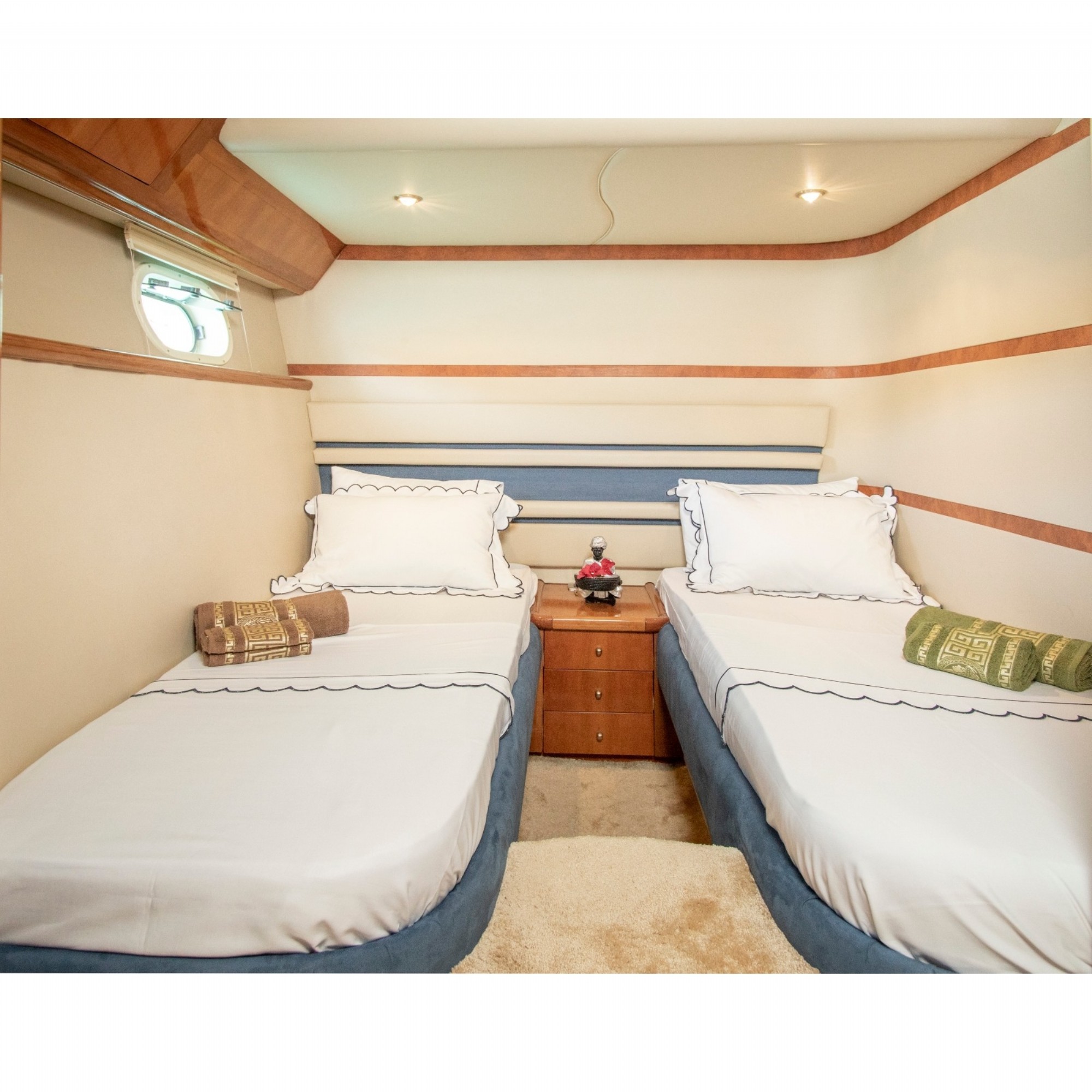 21 metre uzunluk ve 6 m genişliğindeki motoryatımızda 2 master ve 1 twin kabin bulunmaktadır. Siz değerli misafirlerimiz için 6 kişiye kadar konaklama imkanımız bulunmaktadır.