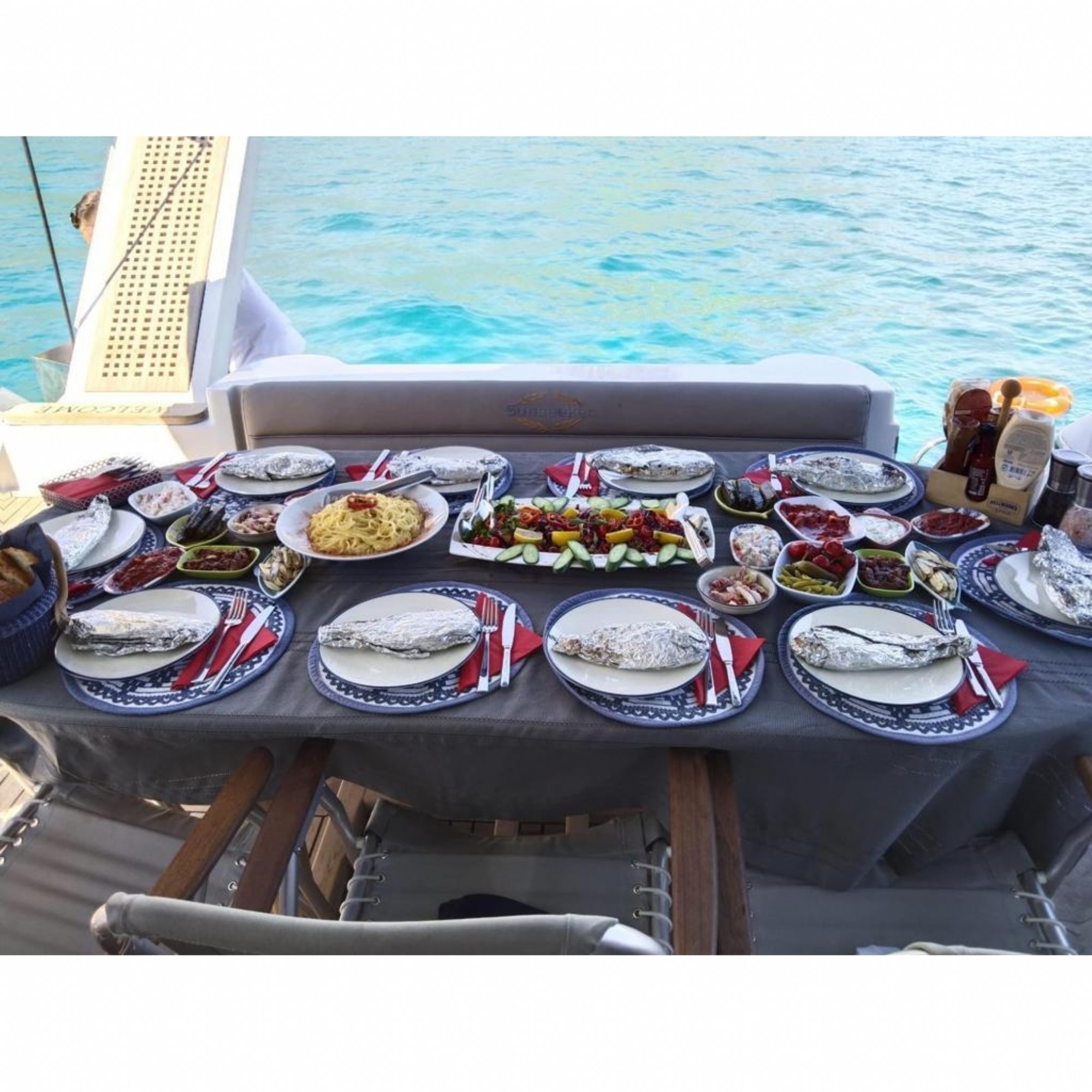 Teknelerimizle mavi yolculuk yaparken ihtiyacınız olan kumanyayı kendiniz temin edebileceğiniz gibi, seçeceğiniz menülere istinaden kaptan ve ya aşçılarımızın miktarlandırmasına göre ihtiyacınız olan kumanyayı anlaşmalı alışveriş merkezinden temin ederiz. Her koşulda teknelerimizde kumanyanızı muhafaza eder ve alanında profesyonel mürettebatımız en iyi şekilde hazırlayıp servisini yapacaktır.