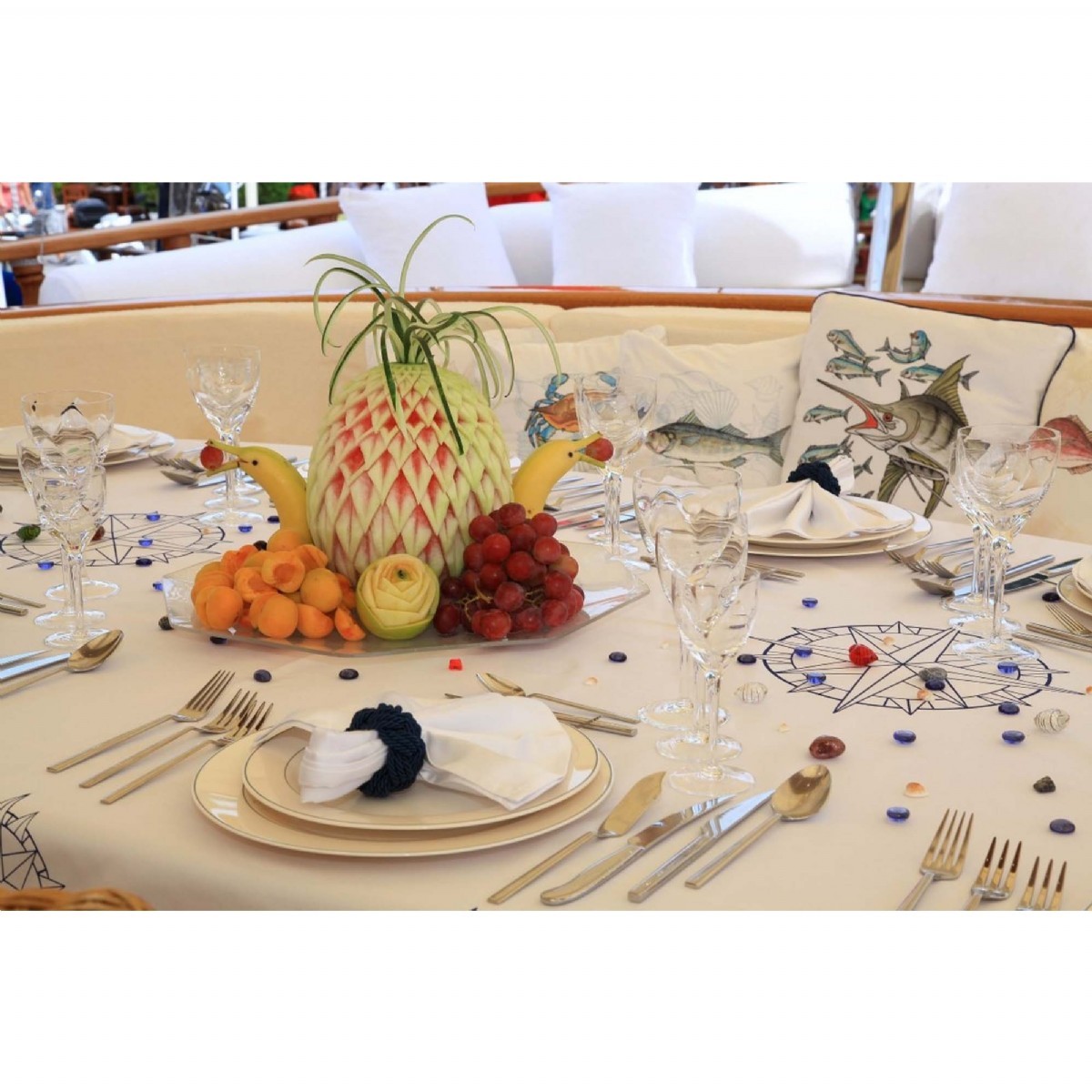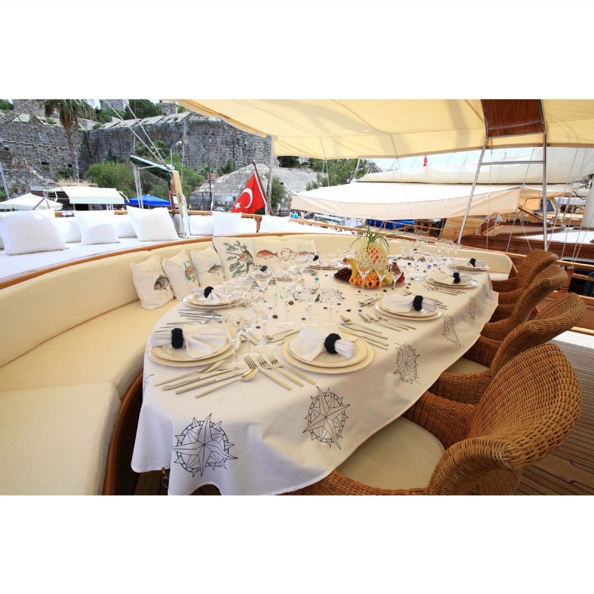 Teknelerimizle mavi yolculuk yaparken ihtiyacınız olan kumanyayı kendiniz temin edebileceğiniz gibi, seçeceğiniz menülere istinaden kaptan ve ya aşçılarımızın miktarlandırmasına göre ihtiyacınız olan kumanyayı anlaşmalı alışveriş merkezinden temin ederiz. Her koşulda teknelerimizde kumanyanızı muhafaza eder ve alanında profesyonel mürettebatımız en iyi şekilde hazırlayıp servisini yapacaktır.
