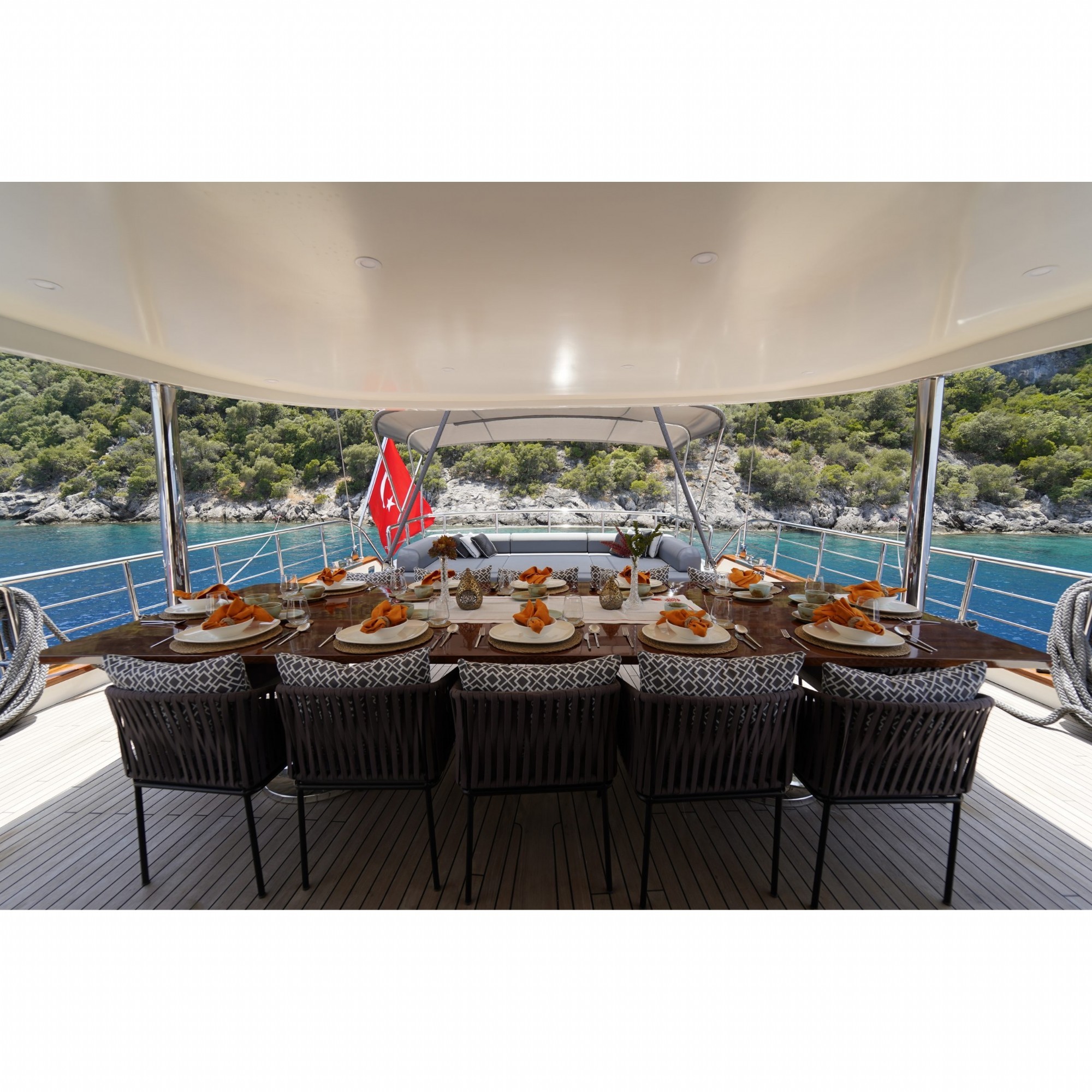Teknemiz ultralüks özelliklerde olup, 6 kabini ile 12 kişilik gruplarınıza kadar hizmet verebilmektedir. Profesyonel mürettebatı, konforlu yaşam alanları ve enfes menüleriyle ultralüksü doruklarda yaşayacaksınız.